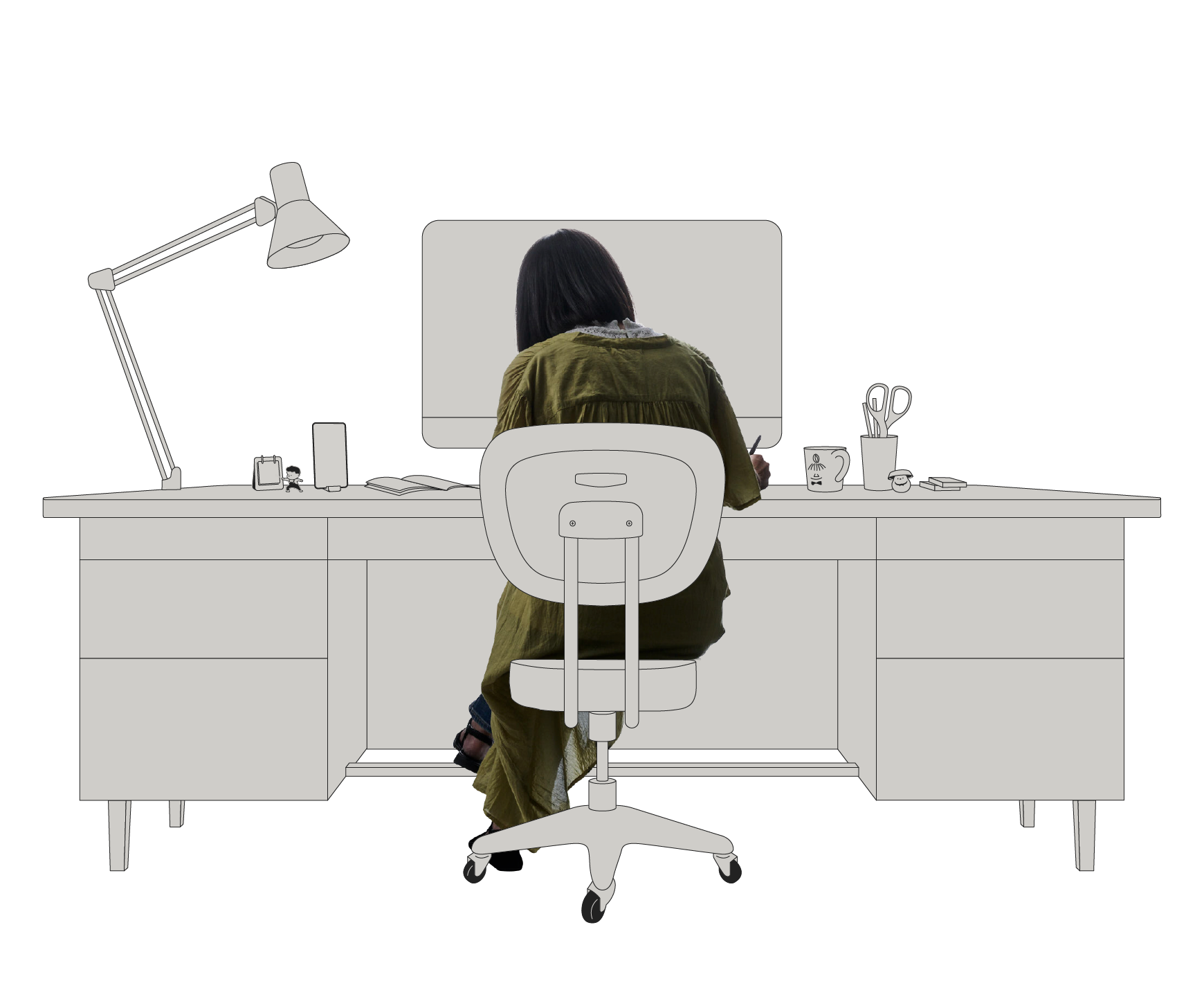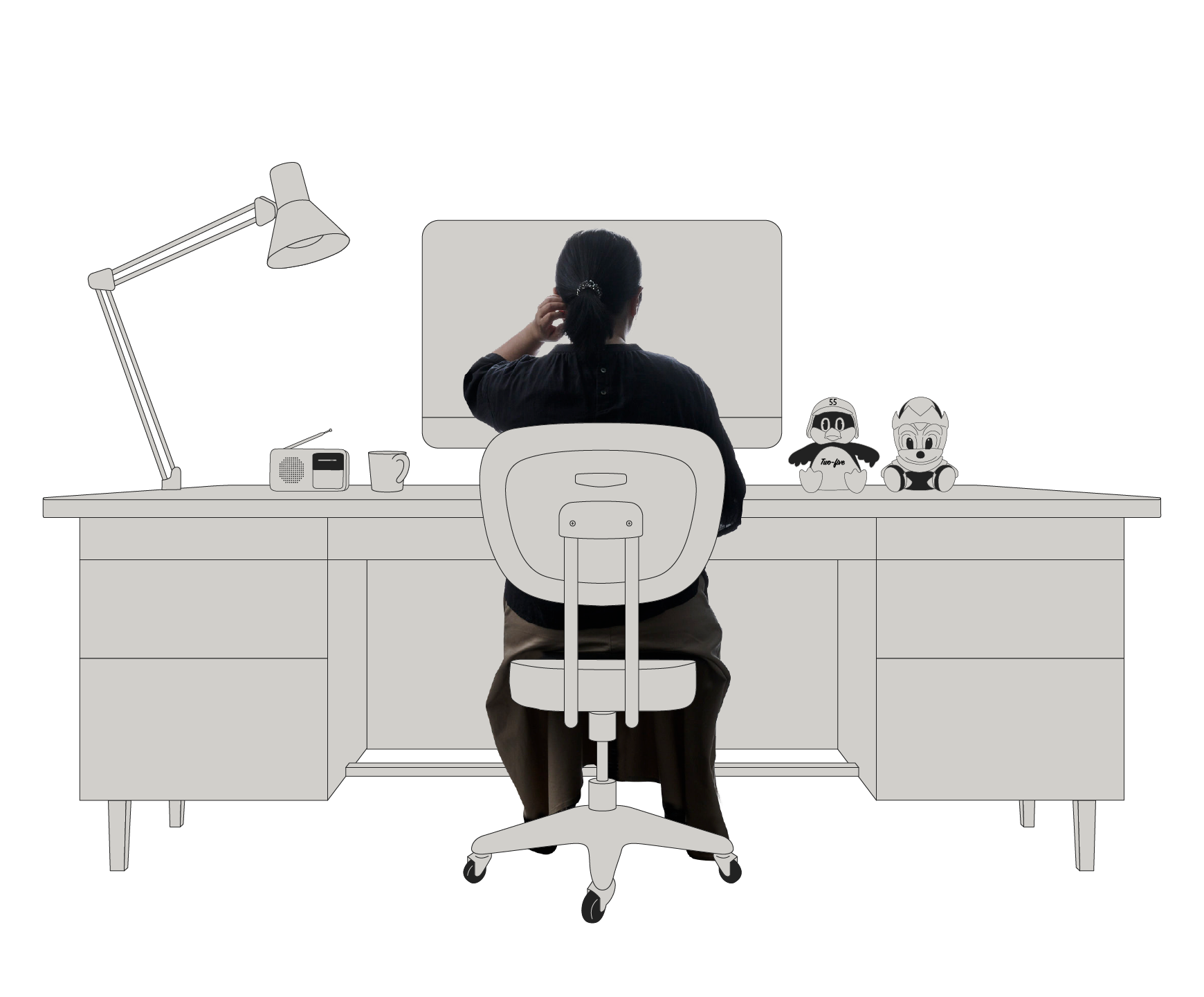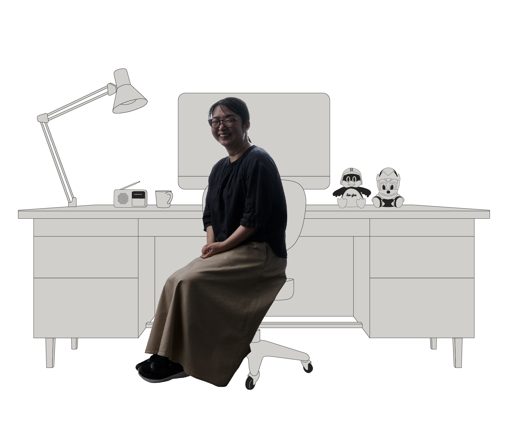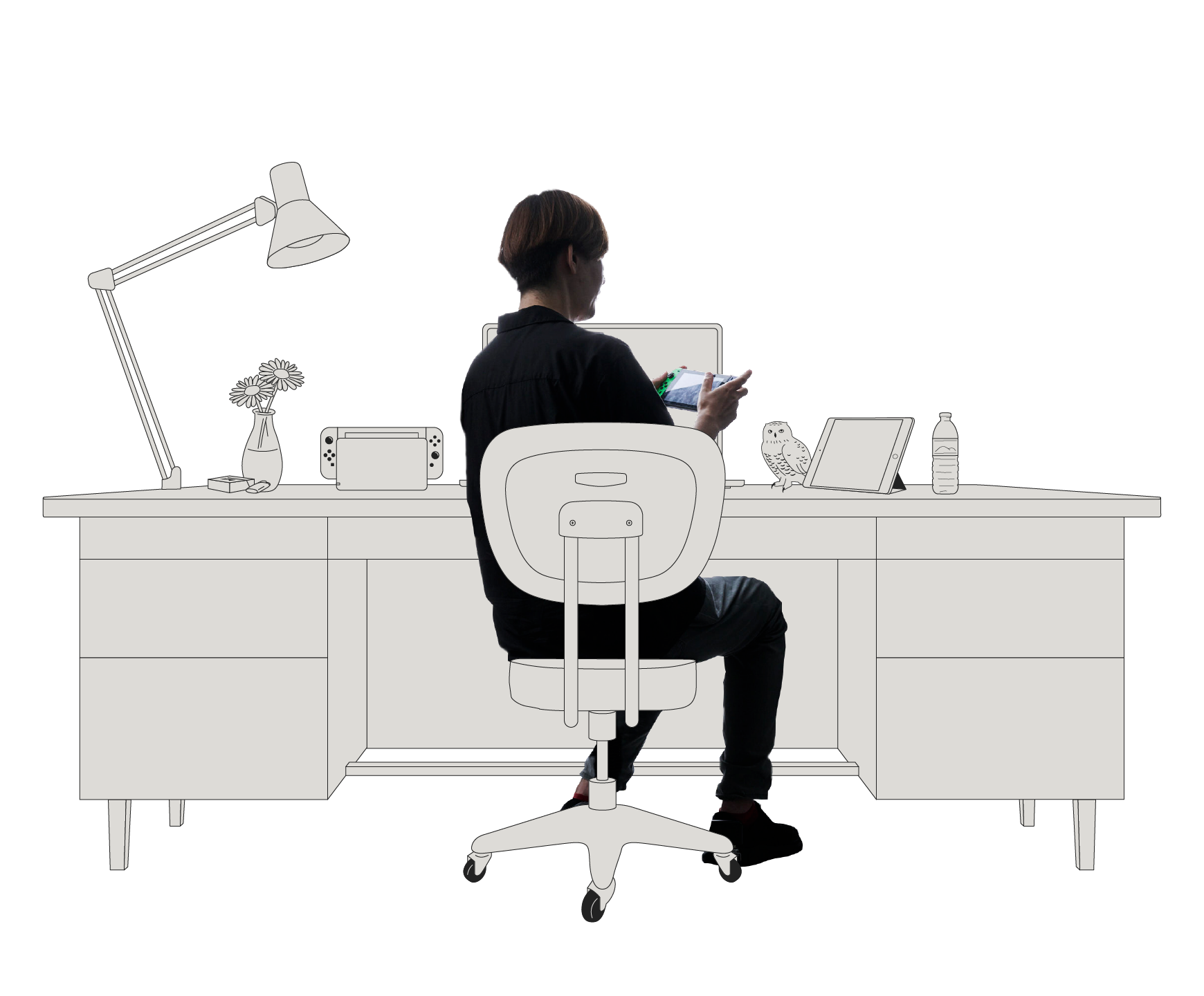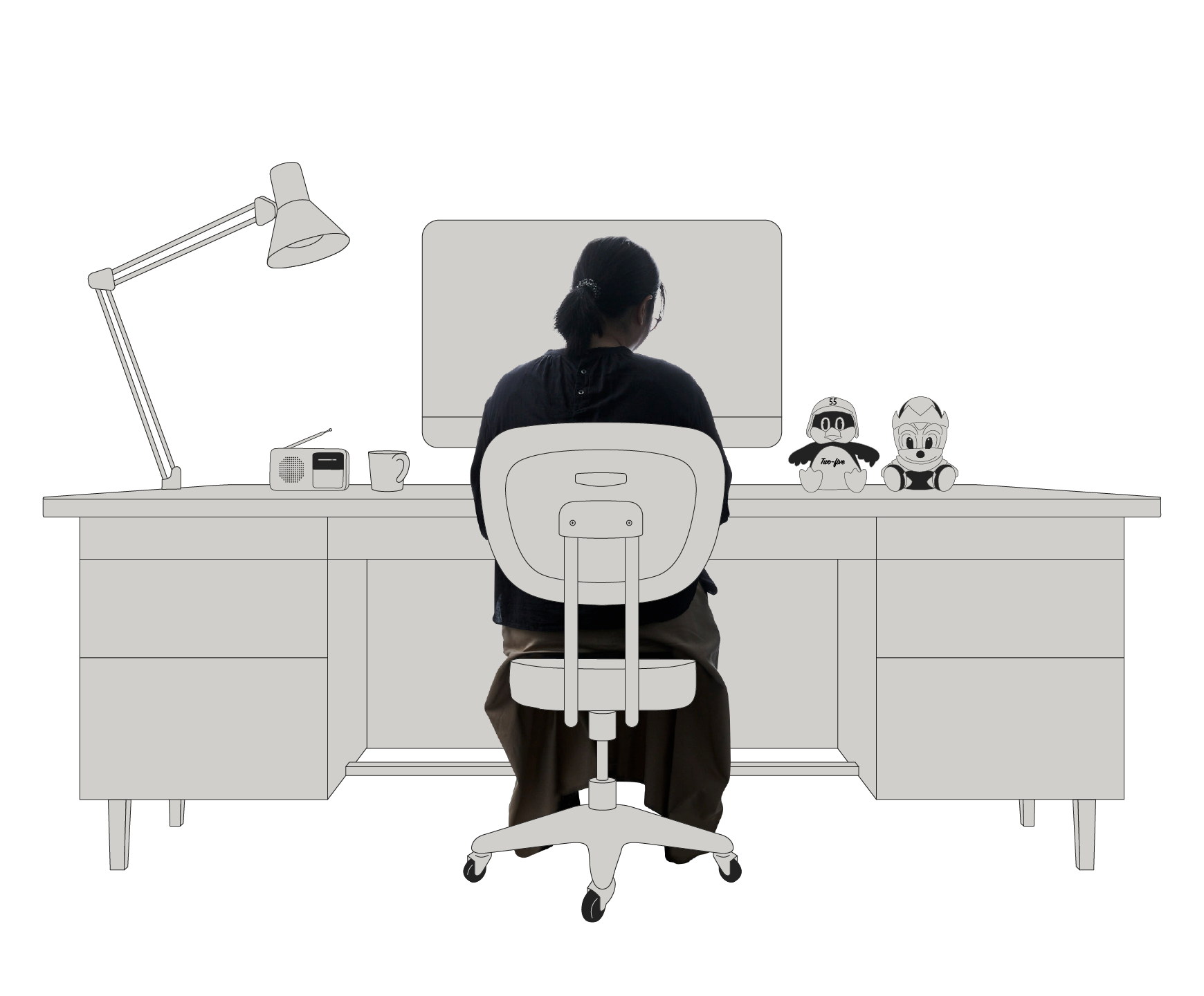 机に置かれたお気に入りのアイテムとともに働くうしろ姿を、ぜひ覗いてみてください。