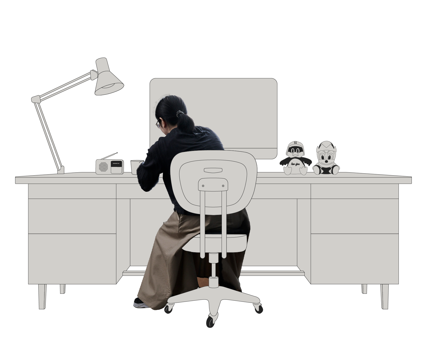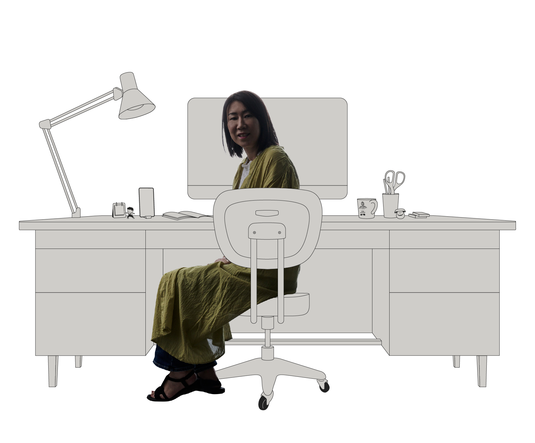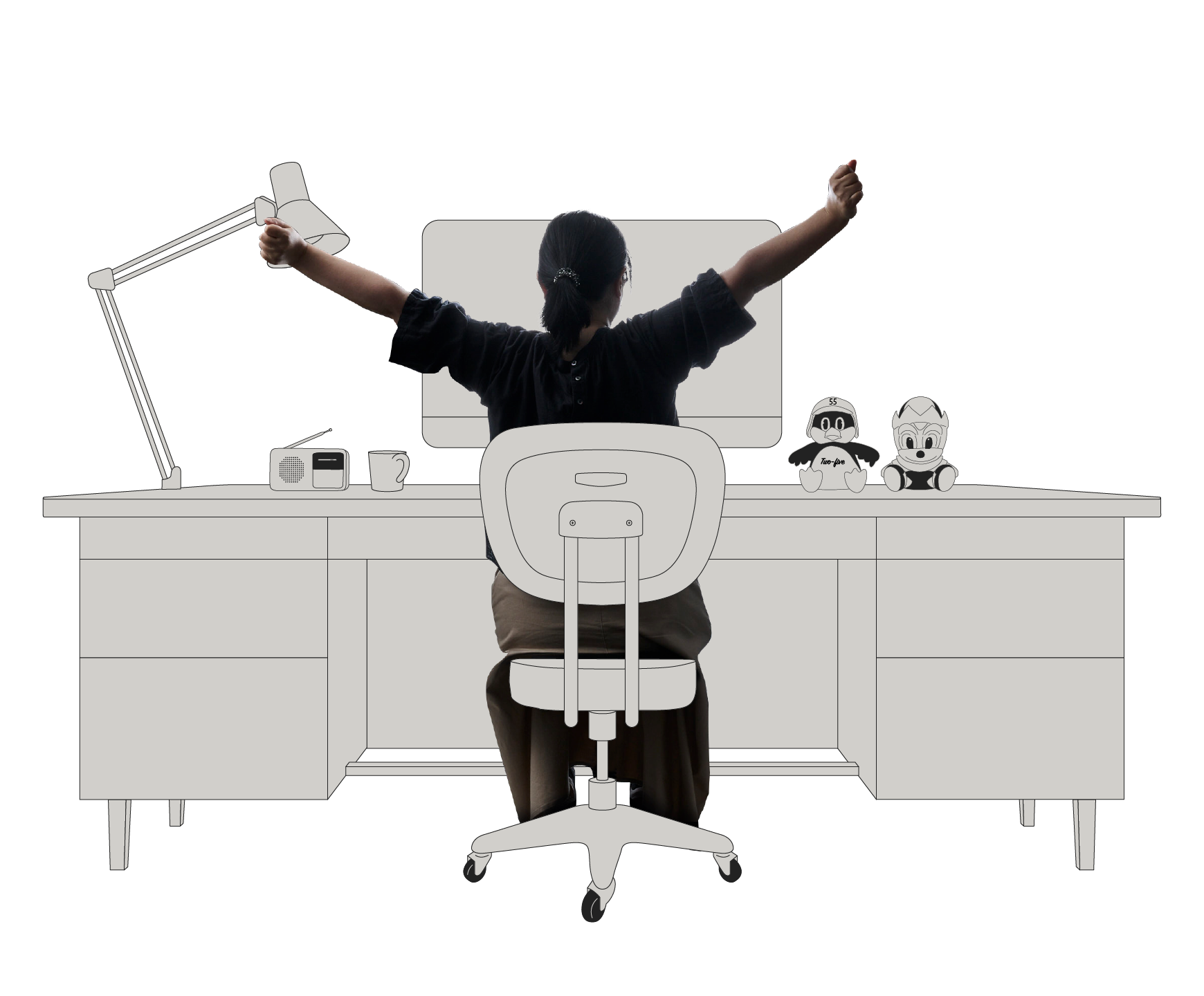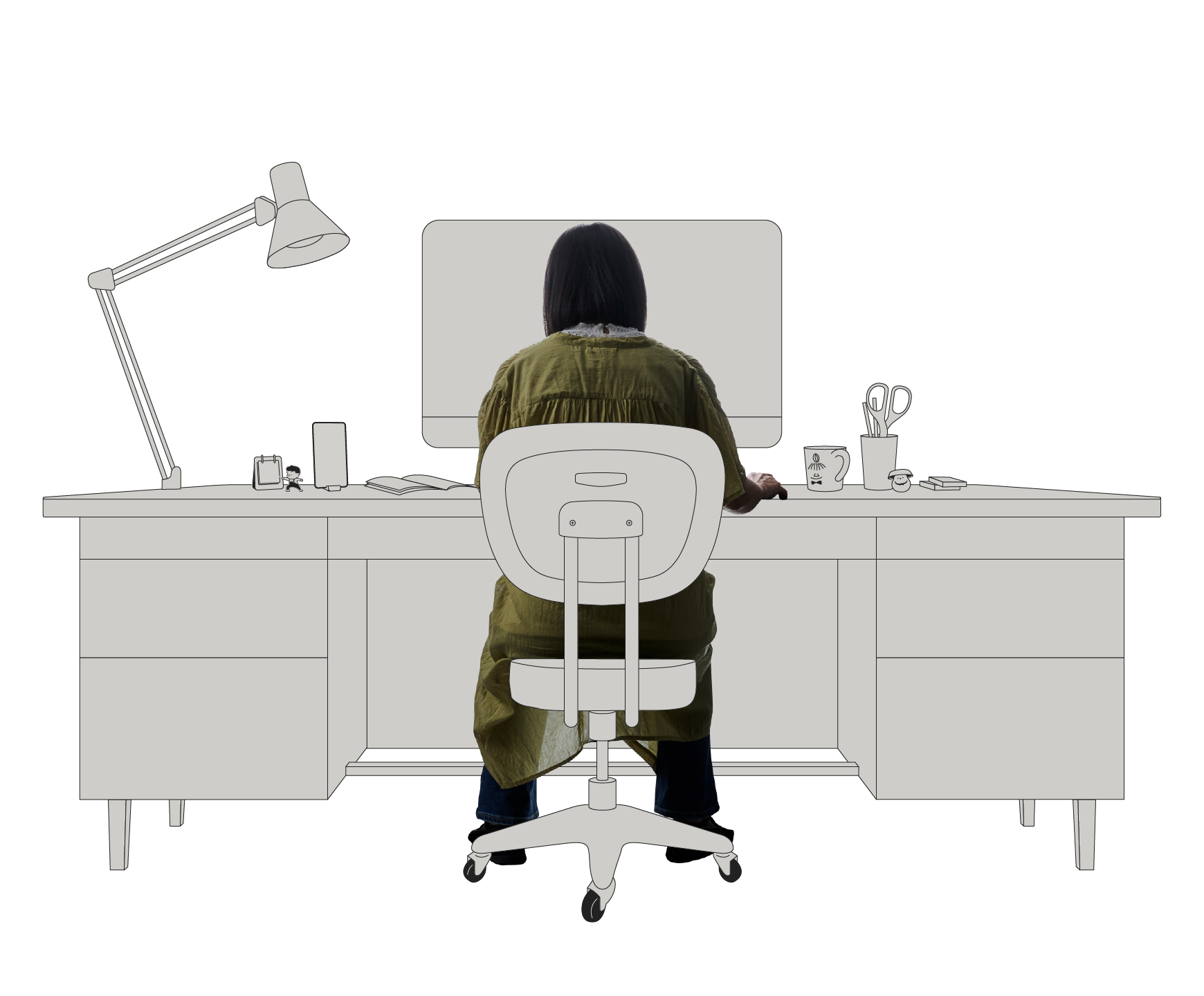 机に置かれたお気に入りのアイテムとともに働くうしろ姿を、ぜひ覗いてみてください。