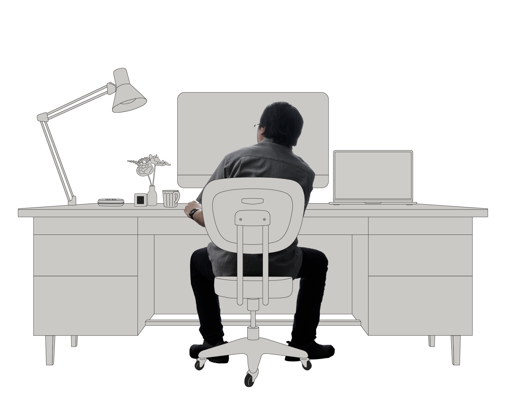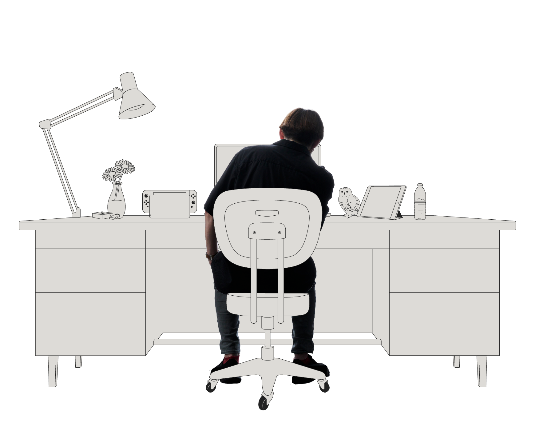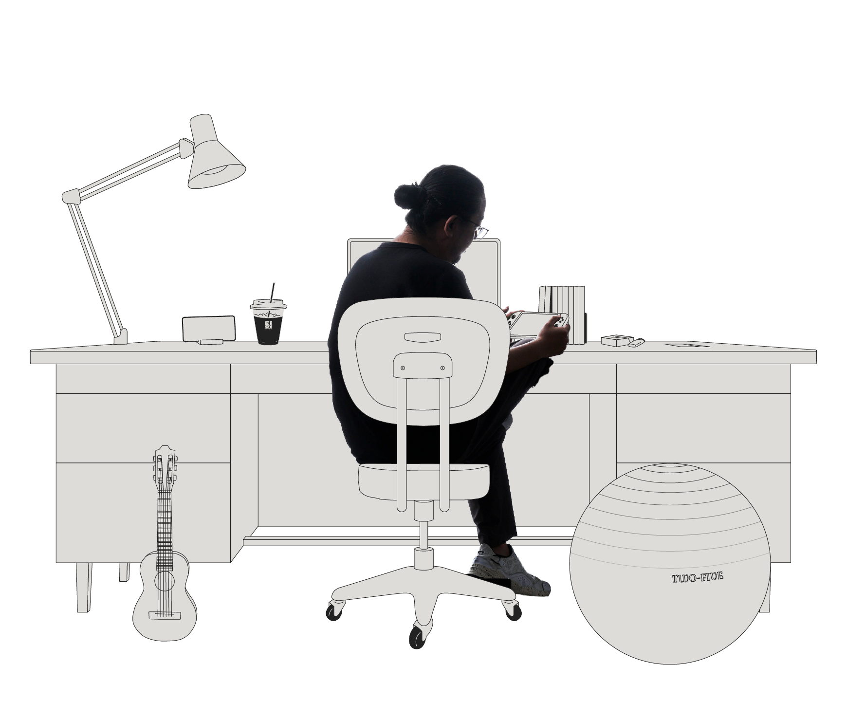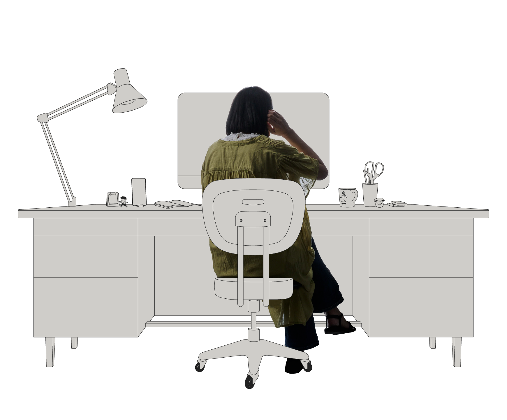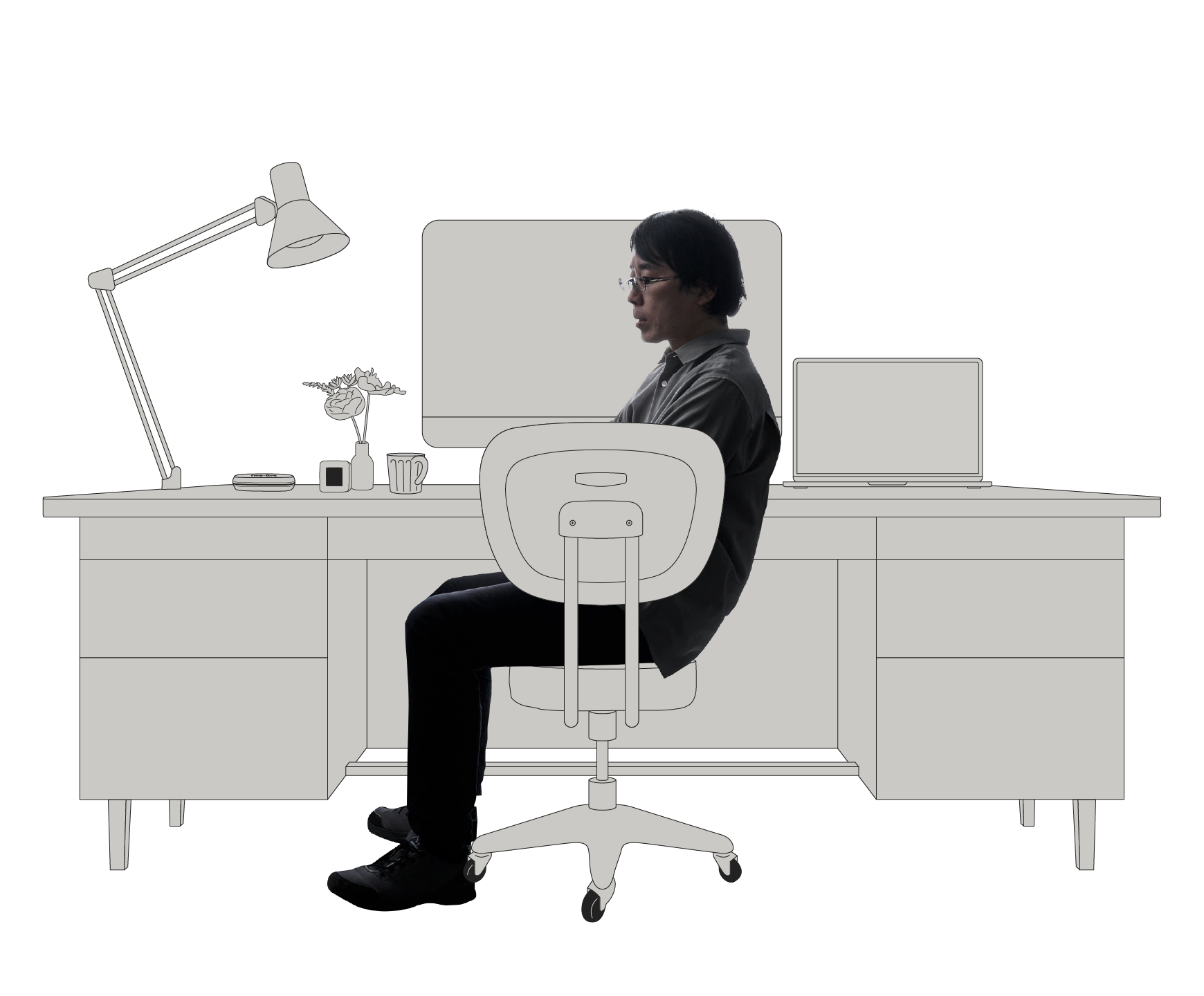 机に置かれたお気に入りのアイテムとともに働くうしろ姿を、ぜひ覗いてみてください。