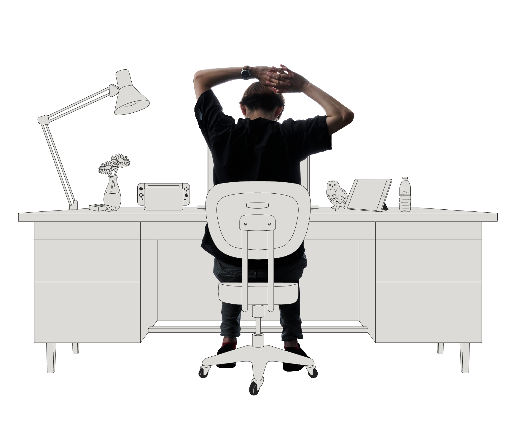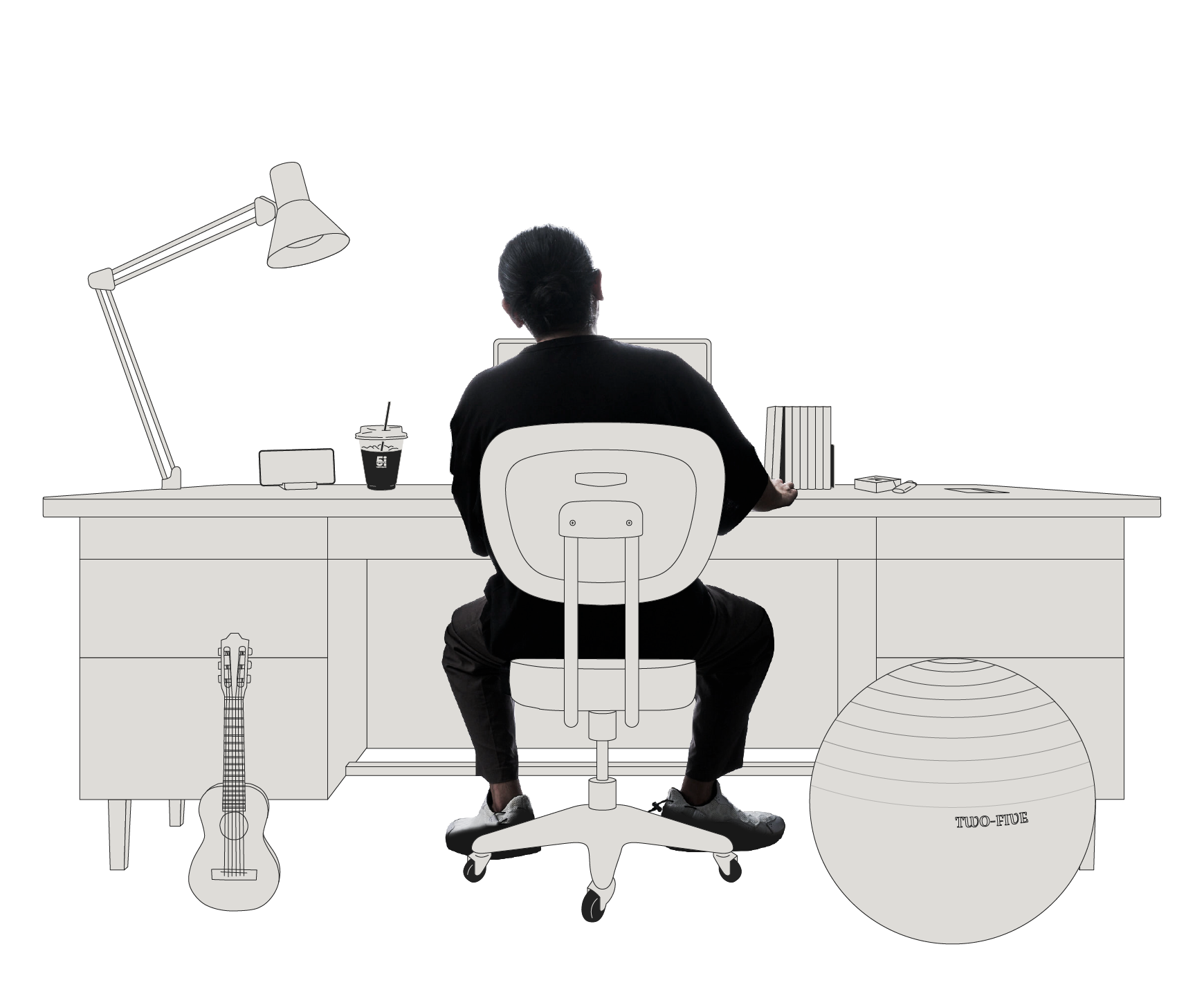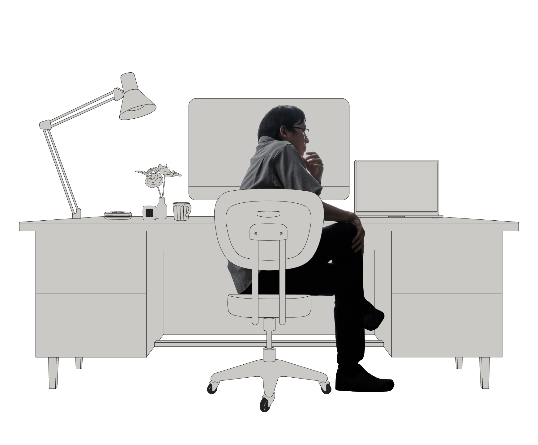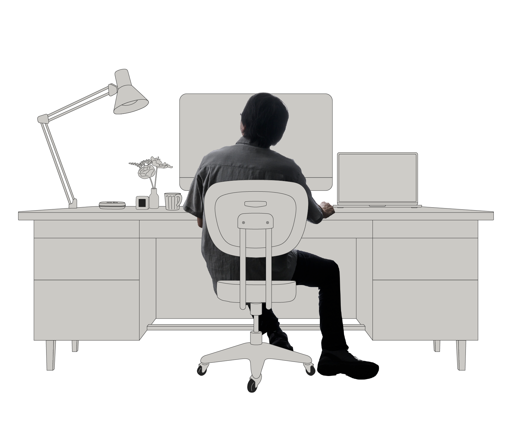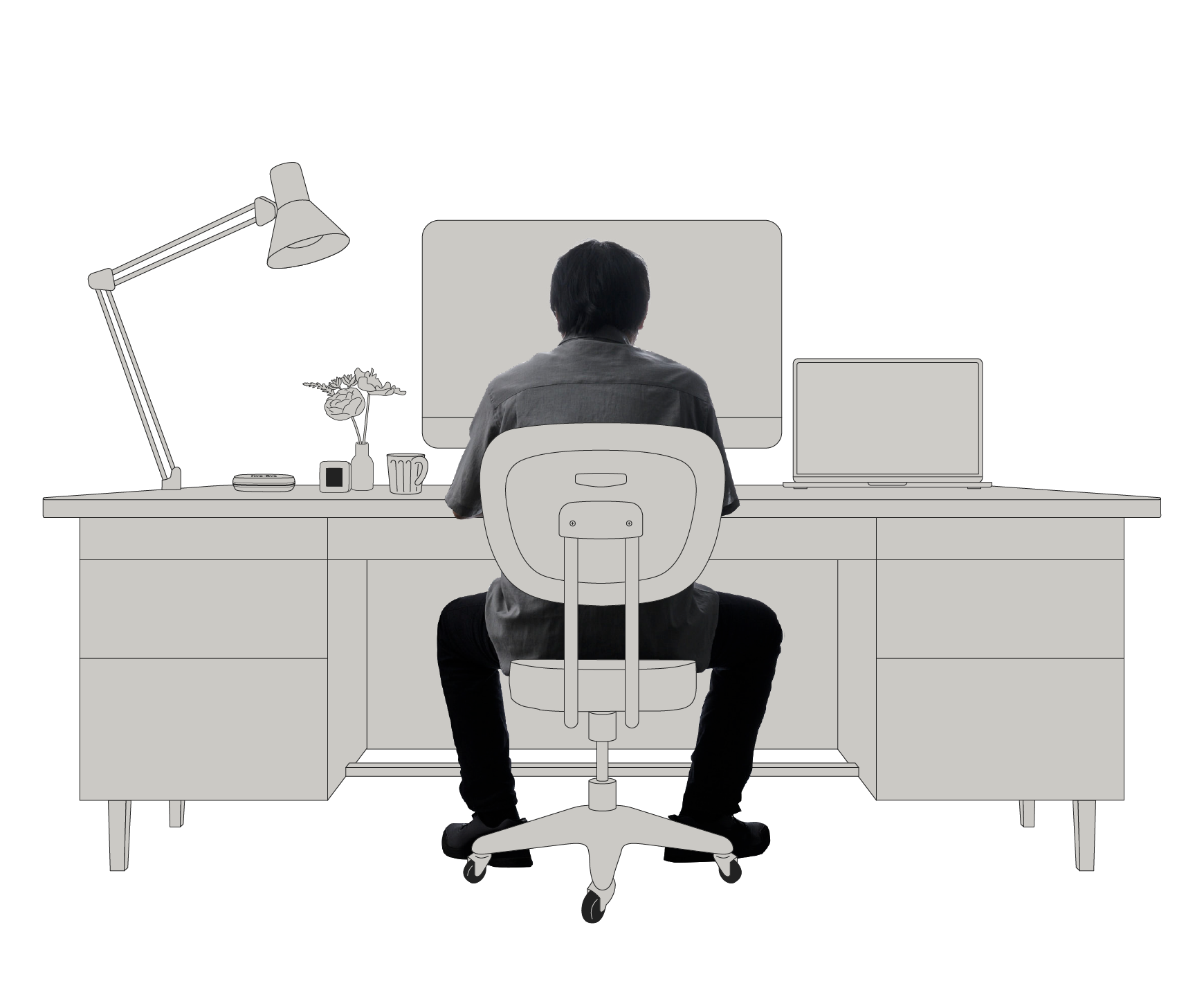 机に置かれたお気に入りのアイテムとともに働くうしろ姿を、ぜひ覗いてみてください。
