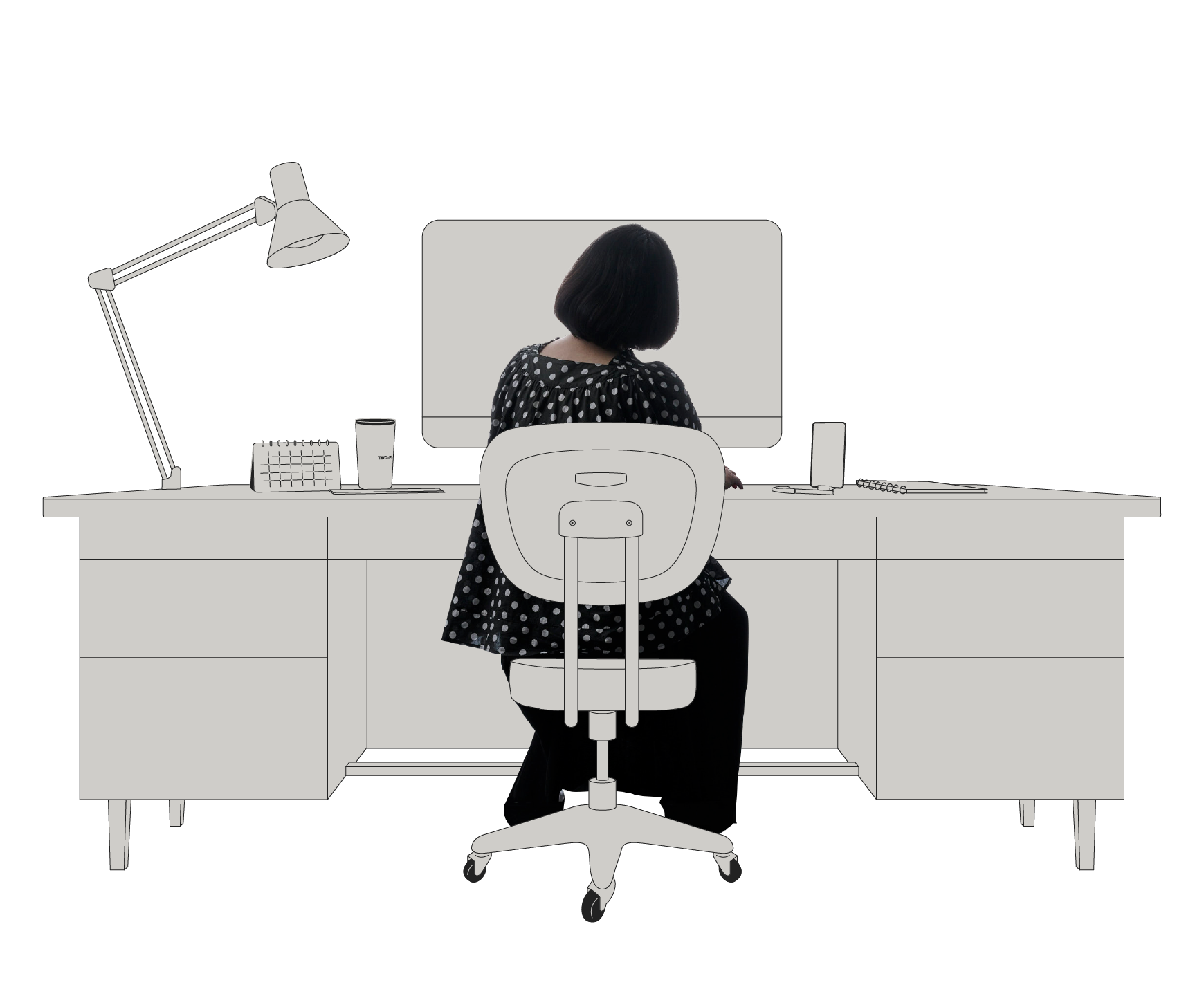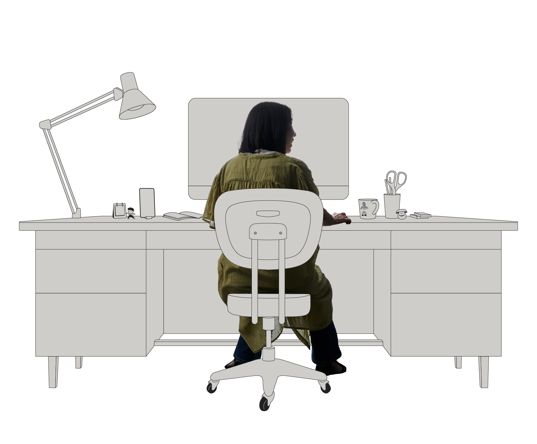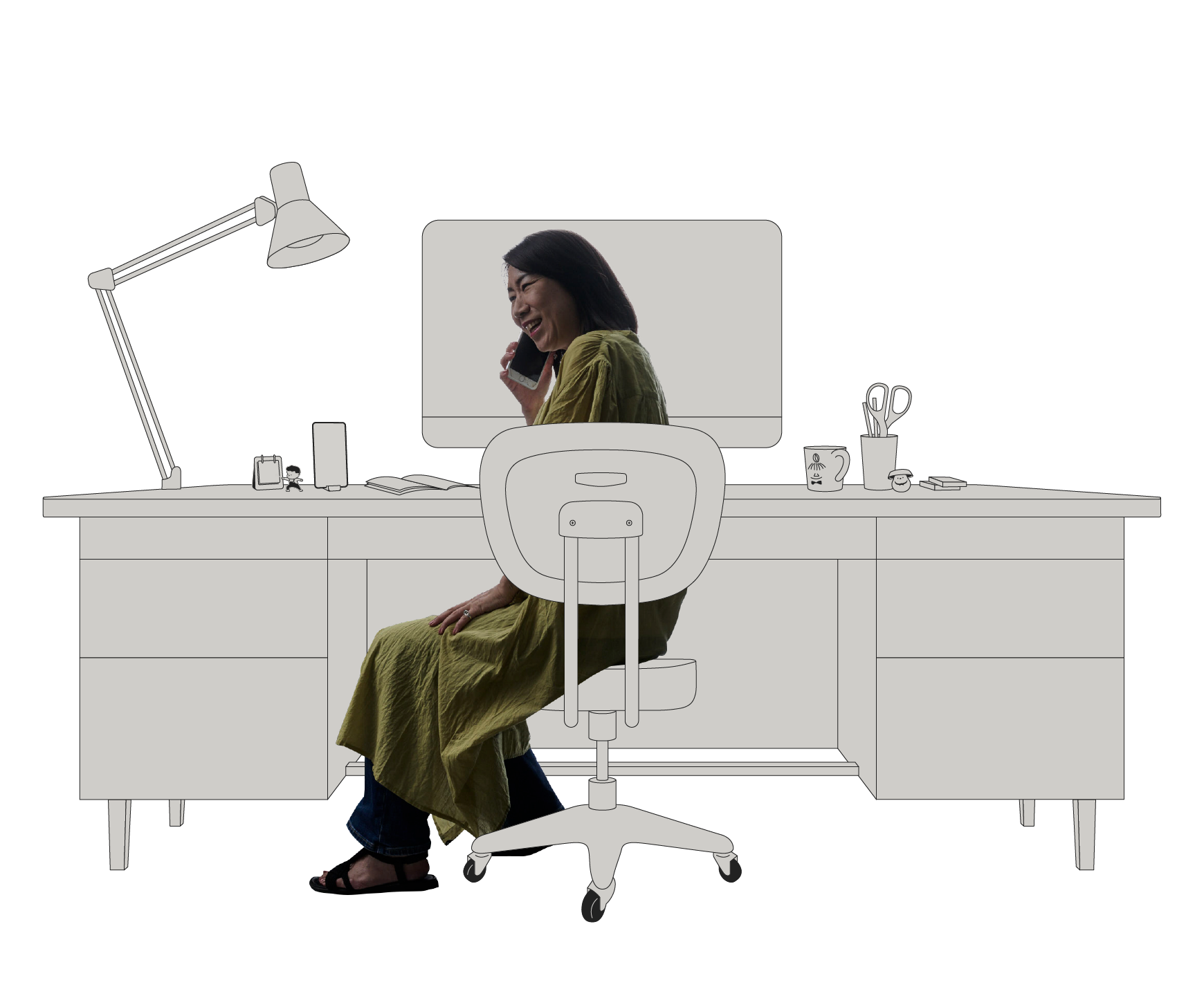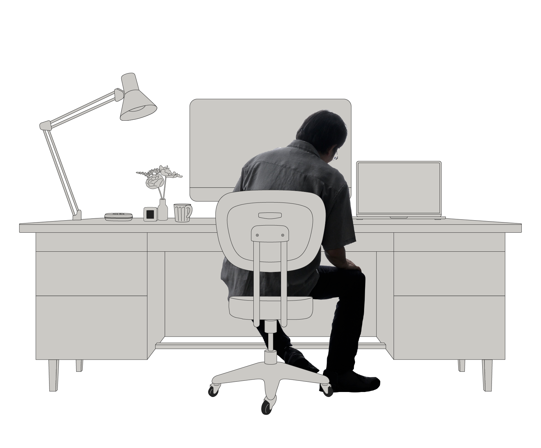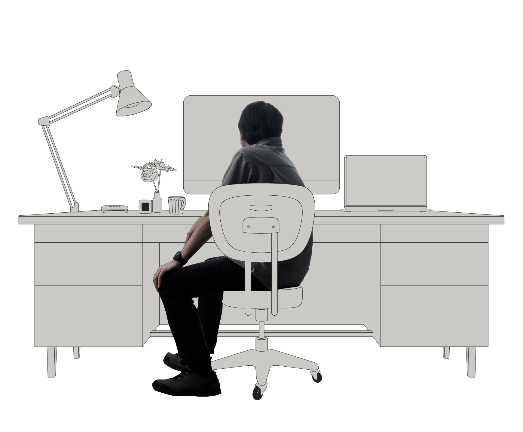 机に置かれたお気に入りのアイテムとともに働くうしろ姿を、ぜひ覗いてみてください。