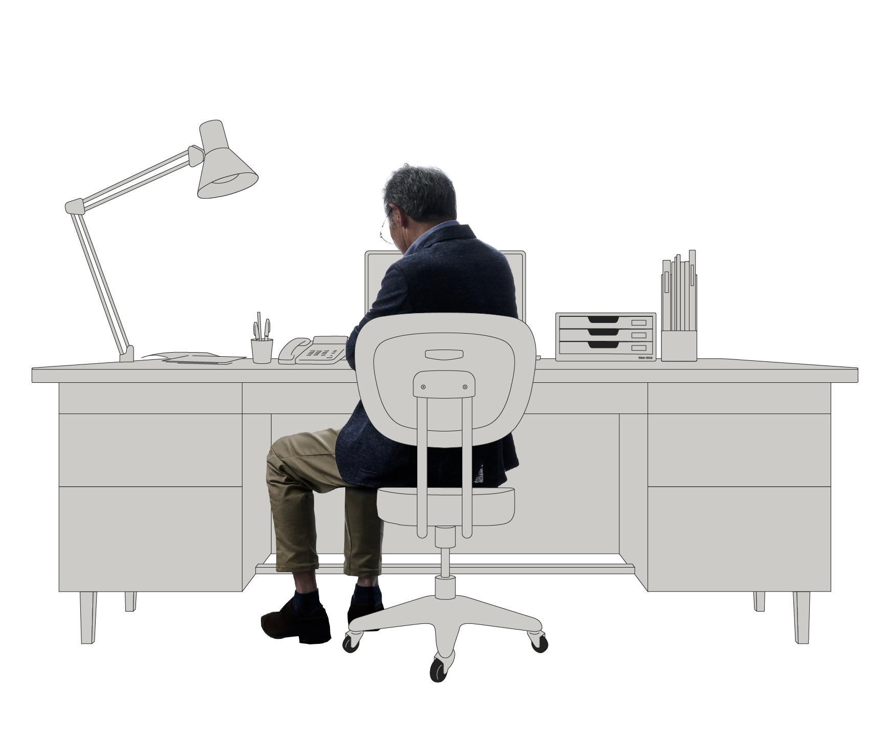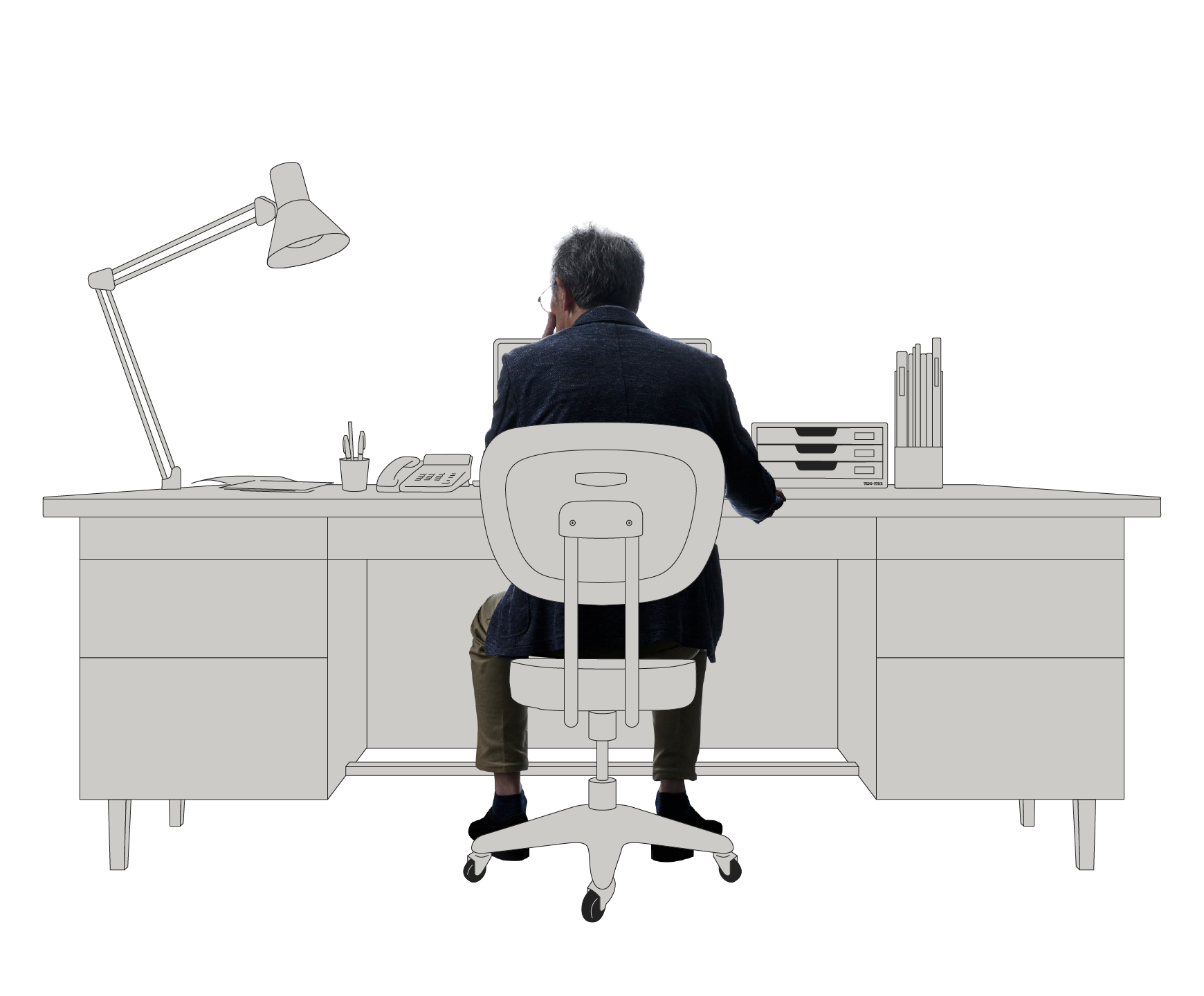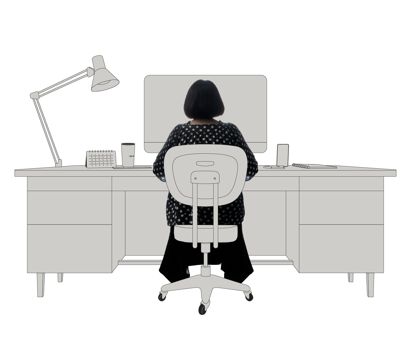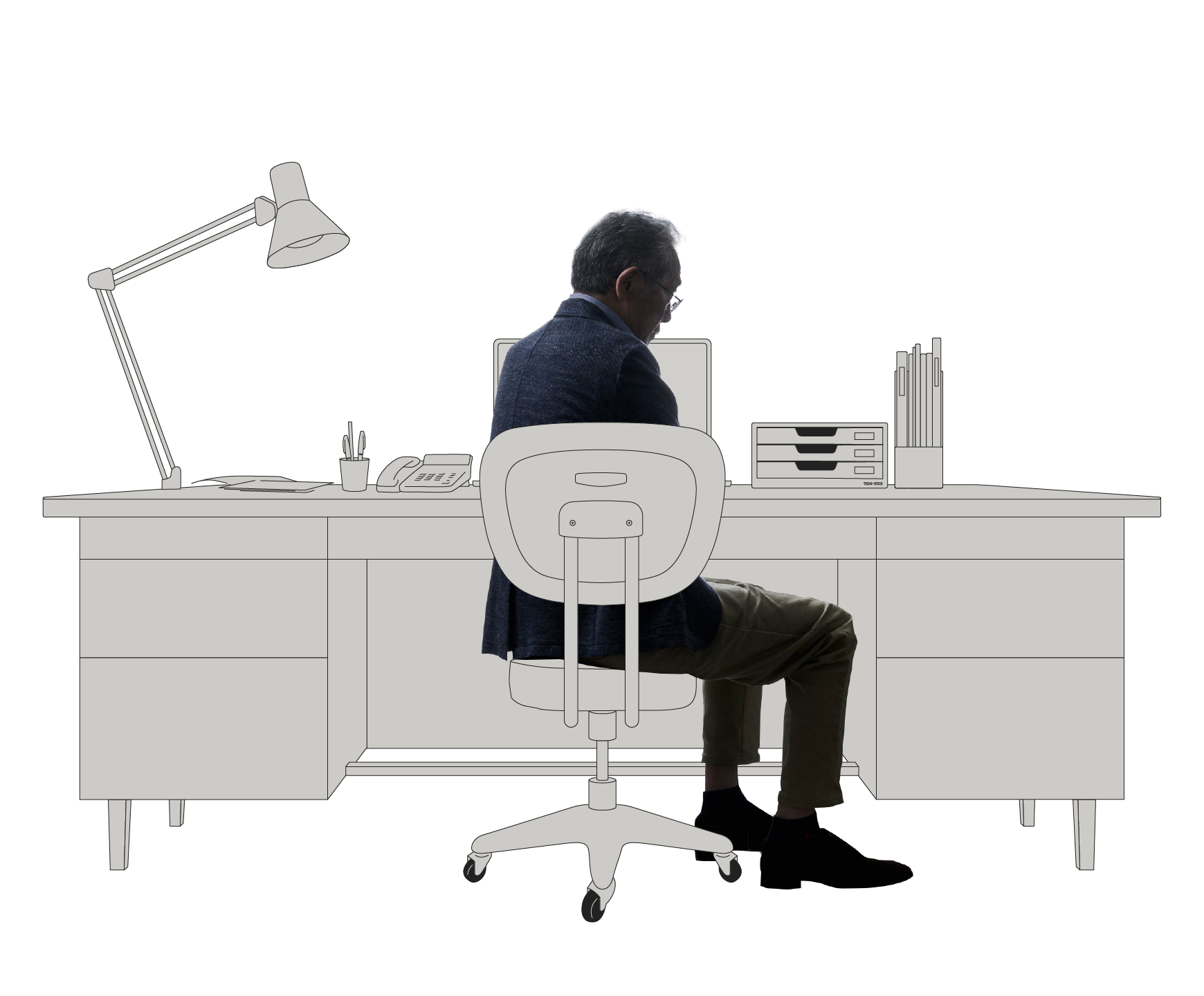 机に置かれたお気に入りのアイテムとともに働くうしろ姿を、ぜひ覗いてみてください。
