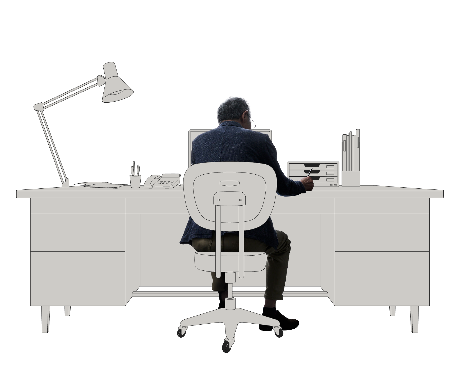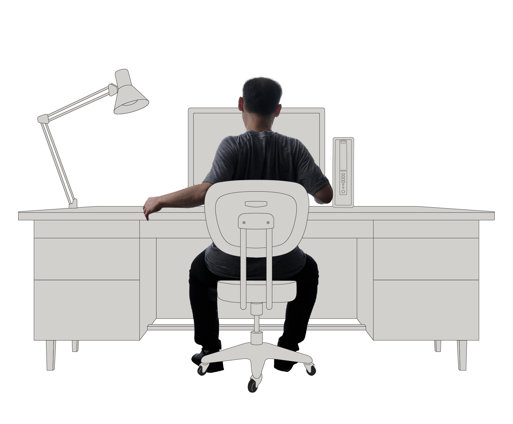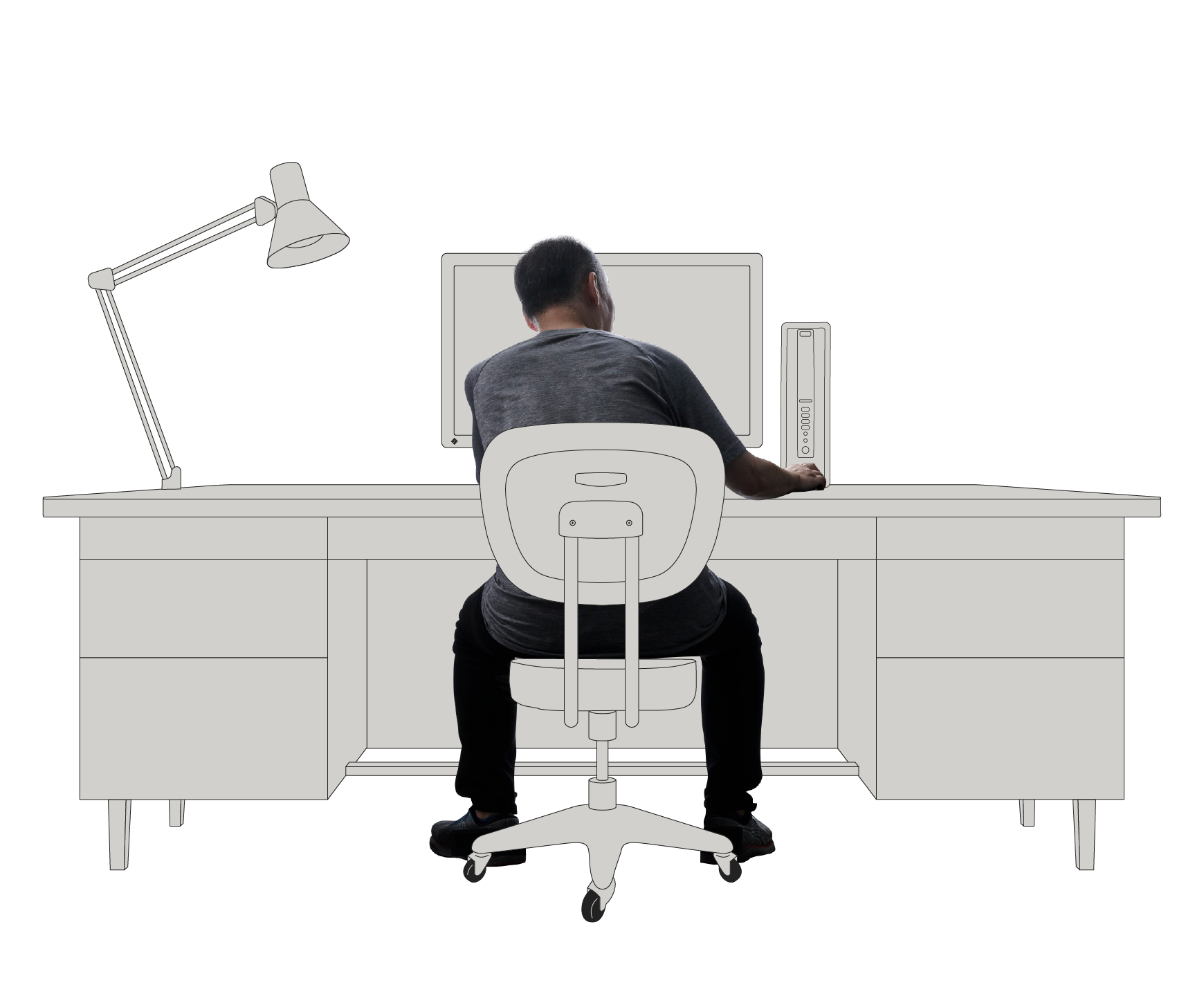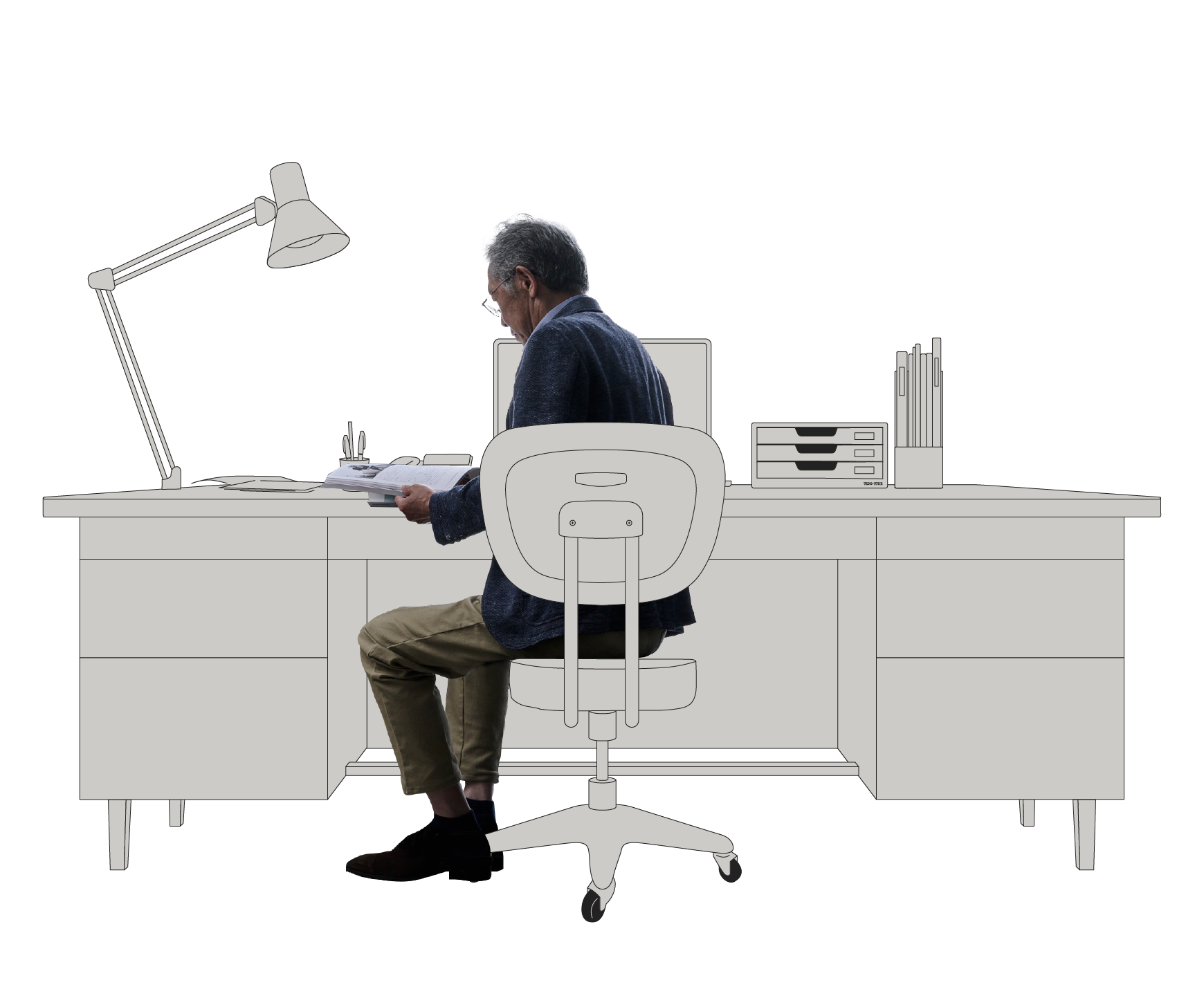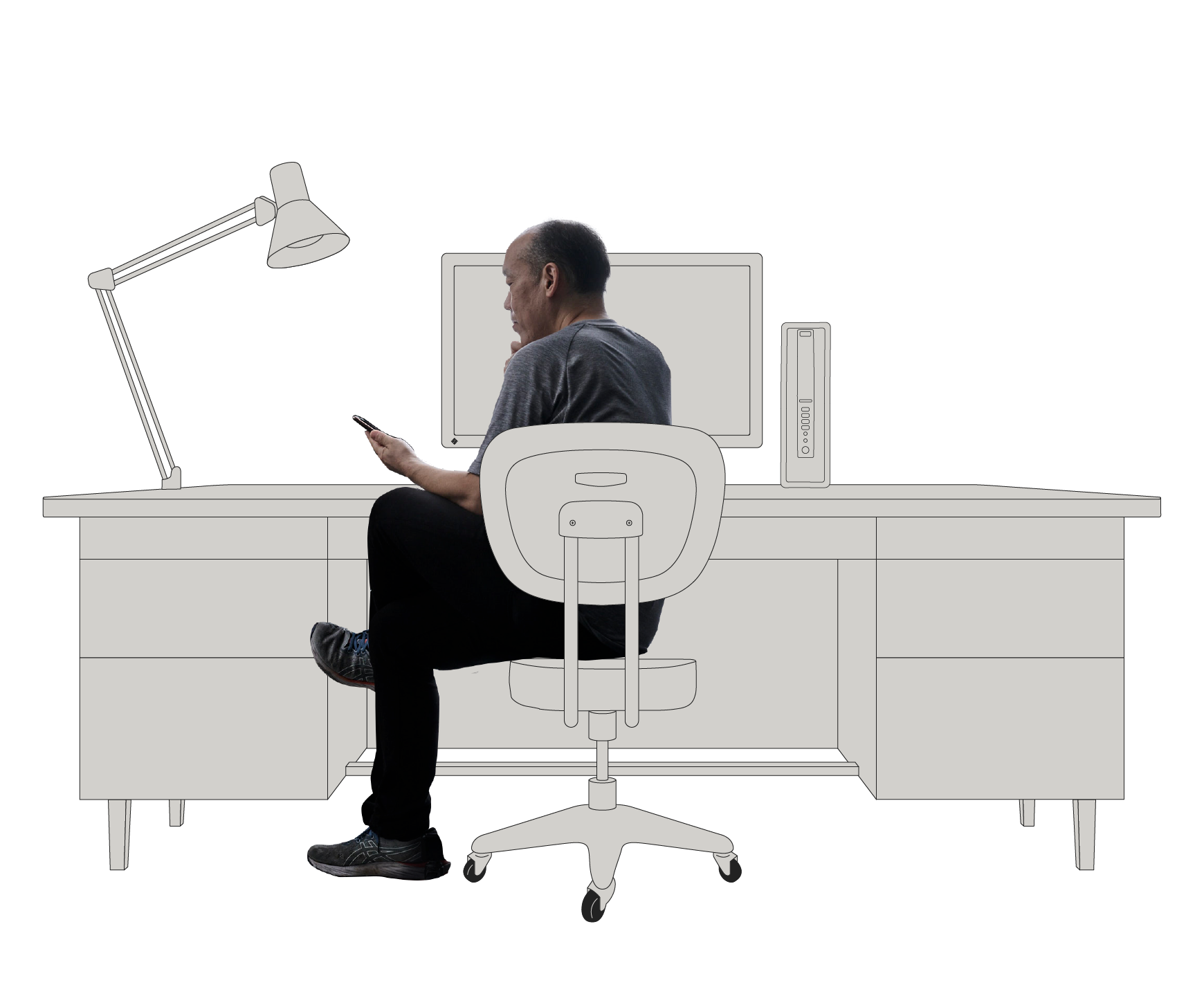 机に置かれたお気に入りのアイテムとともに働くうしろ姿を、ぜひ覗いてみてください。