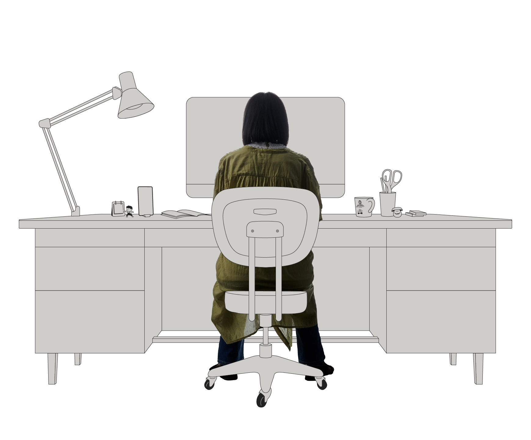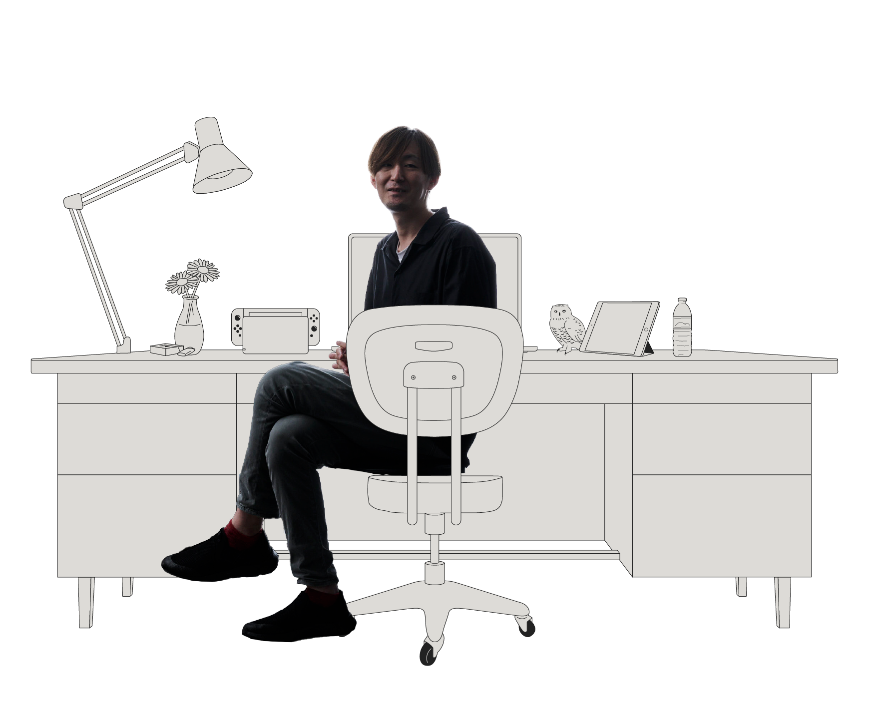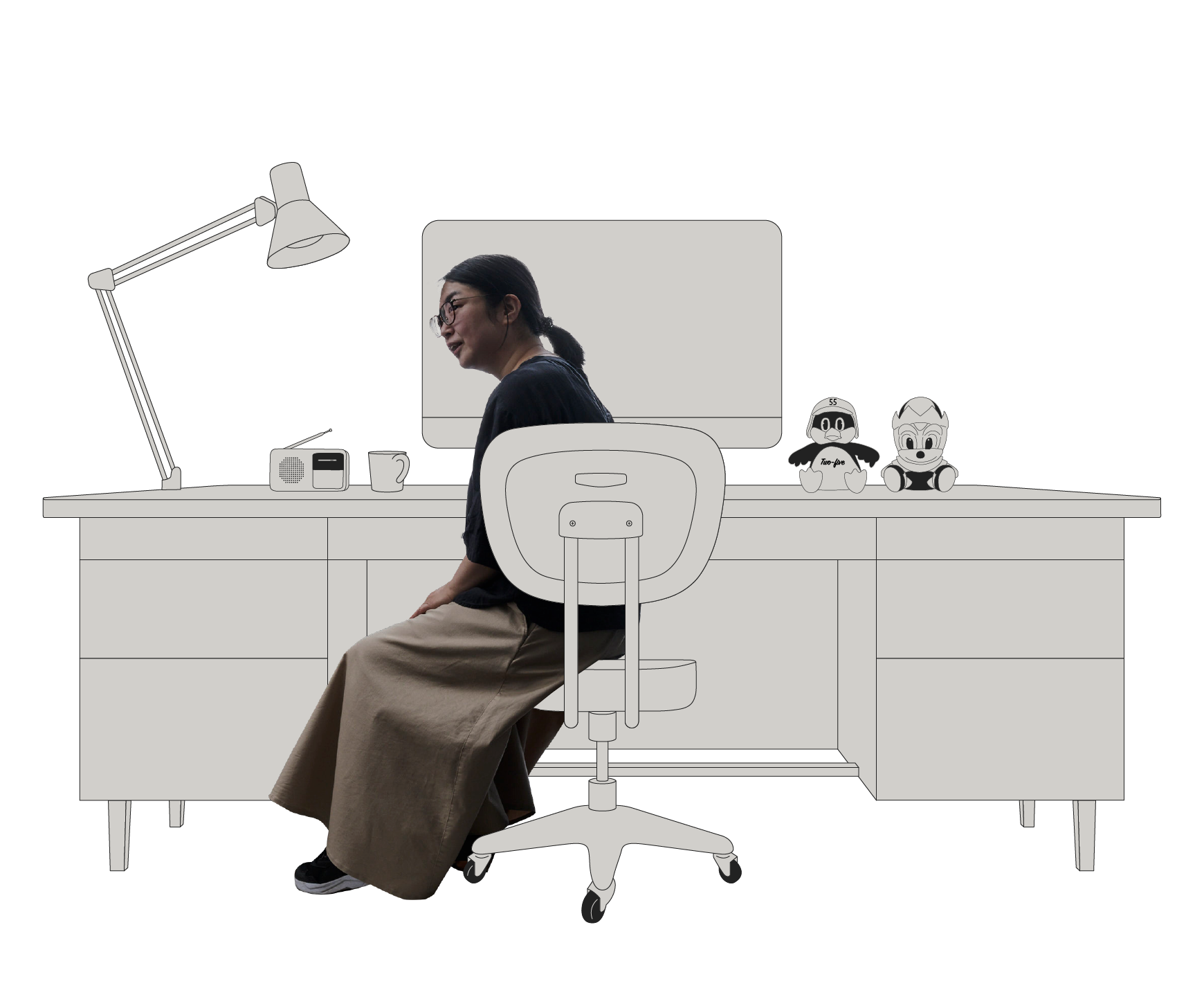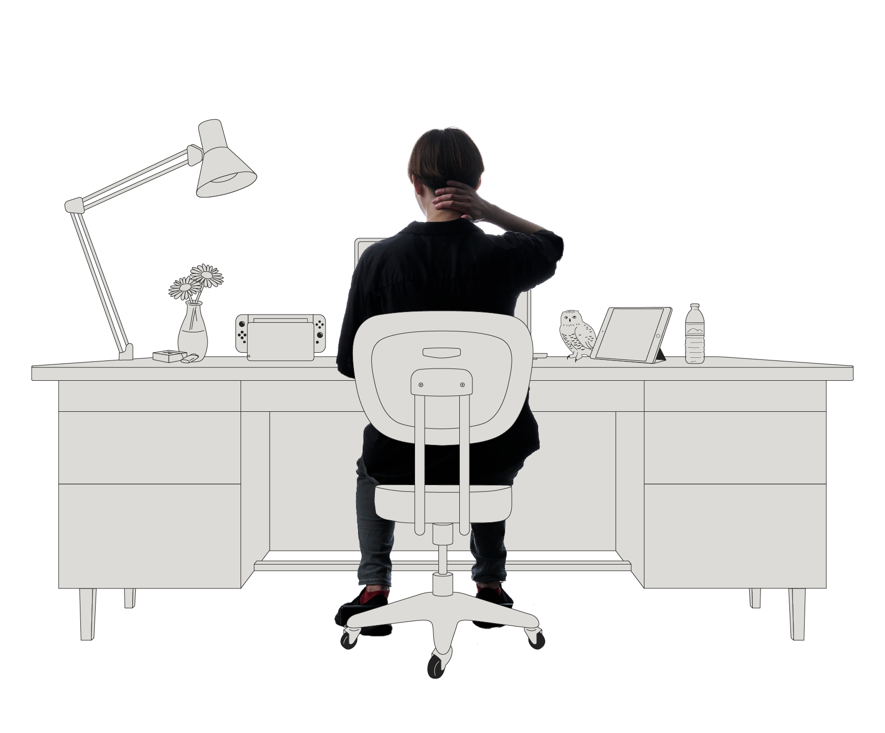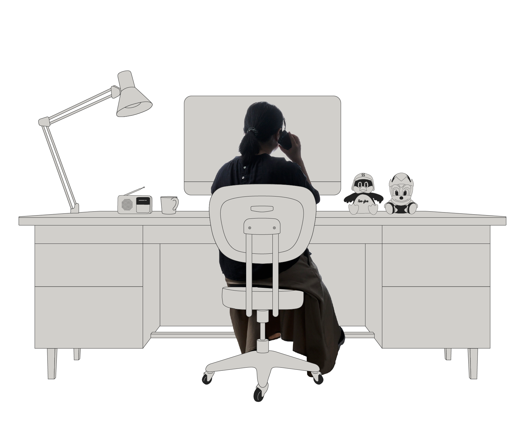 机に置かれたお気に入りのアイテムとともに働くうしろ姿を、ぜひ覗いてみてください。