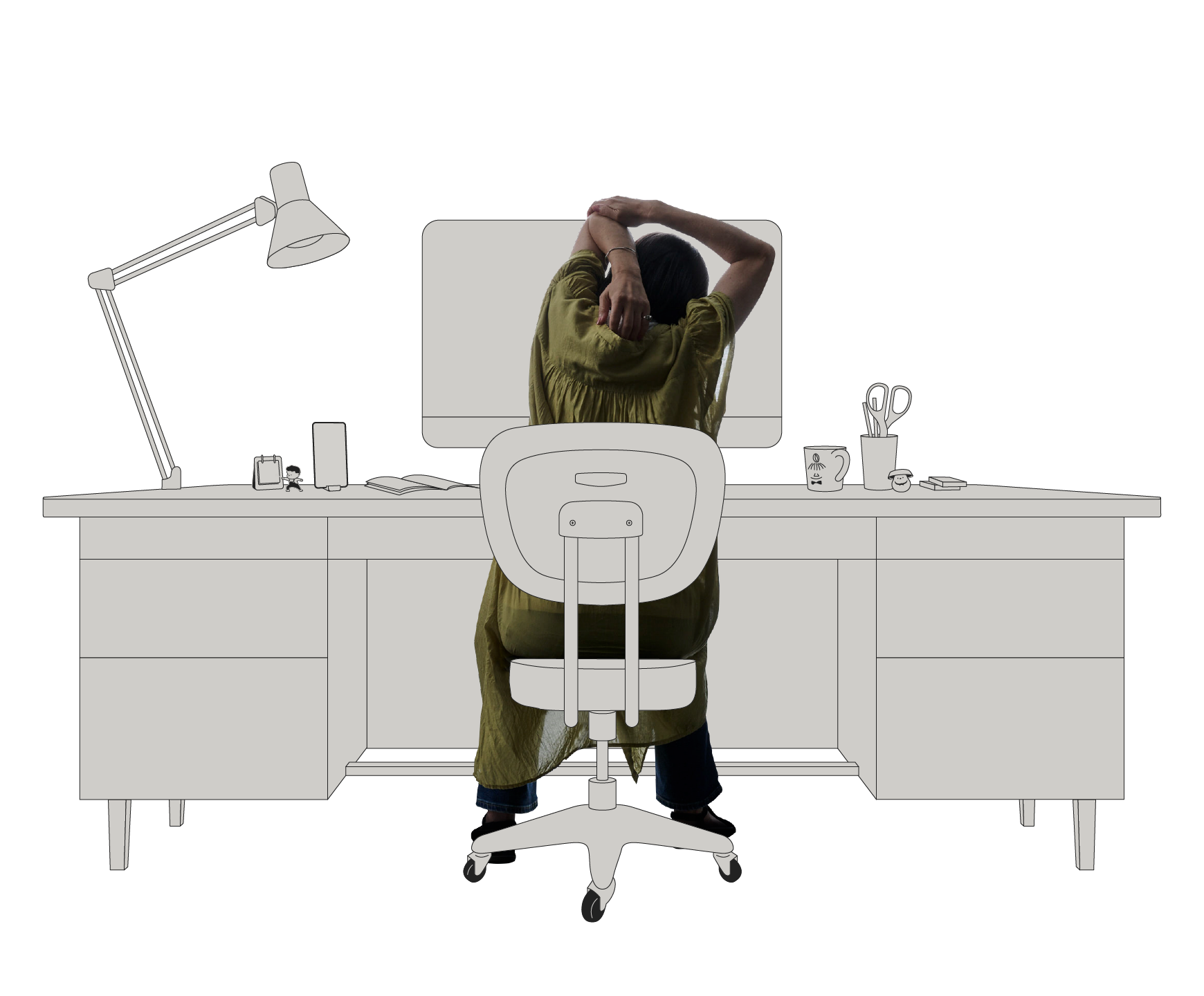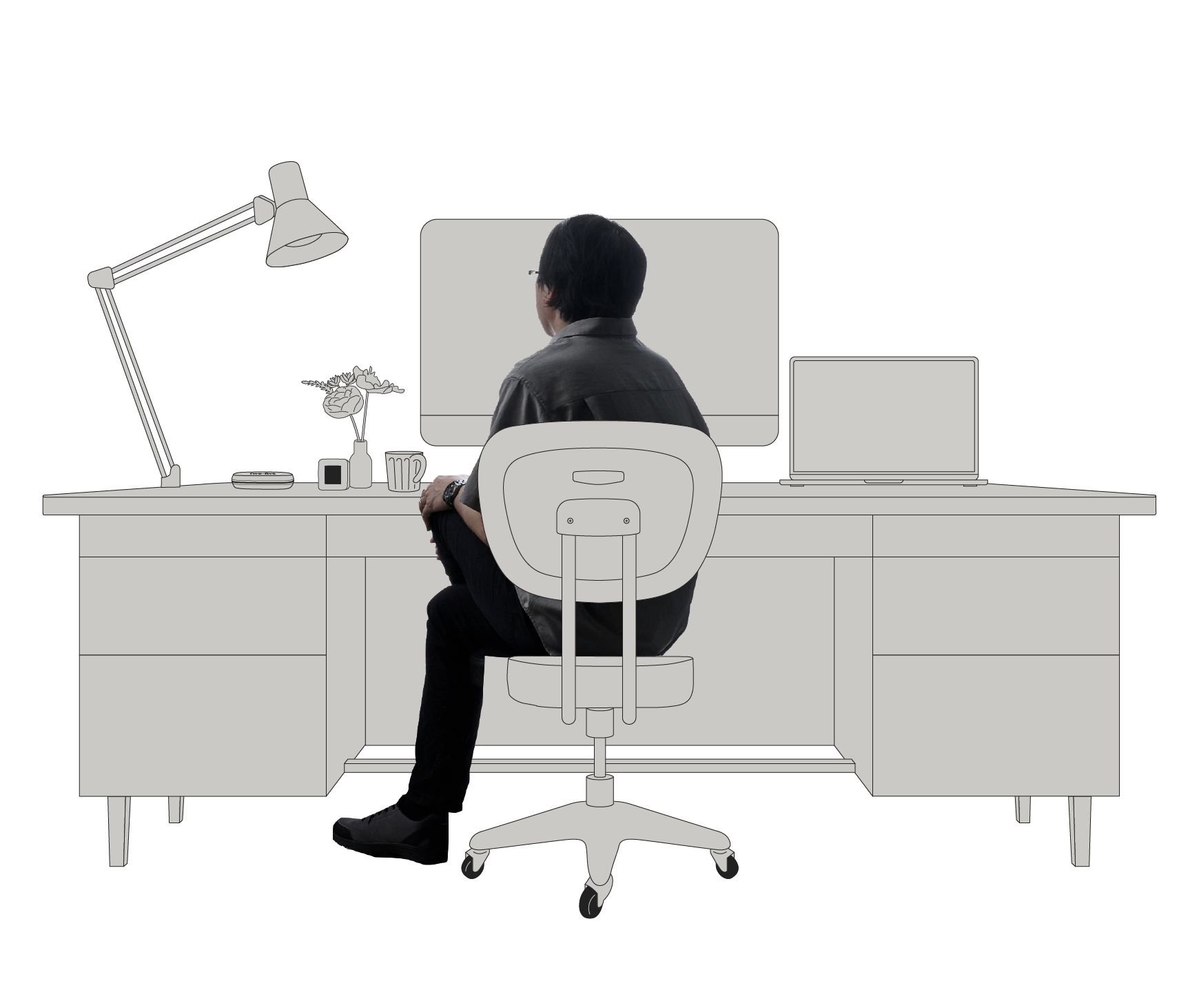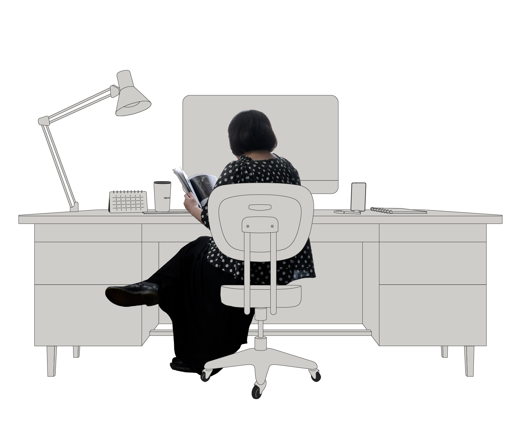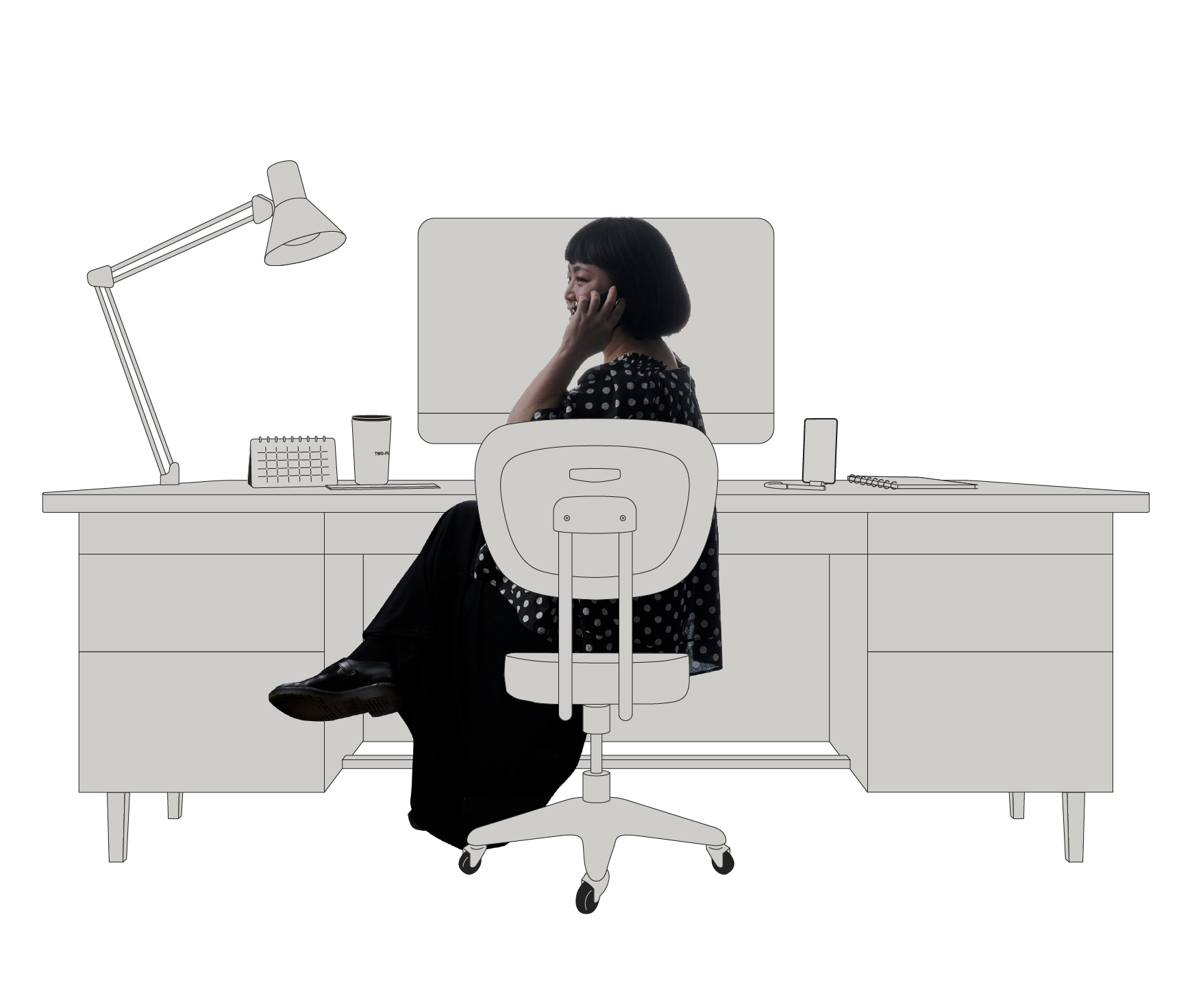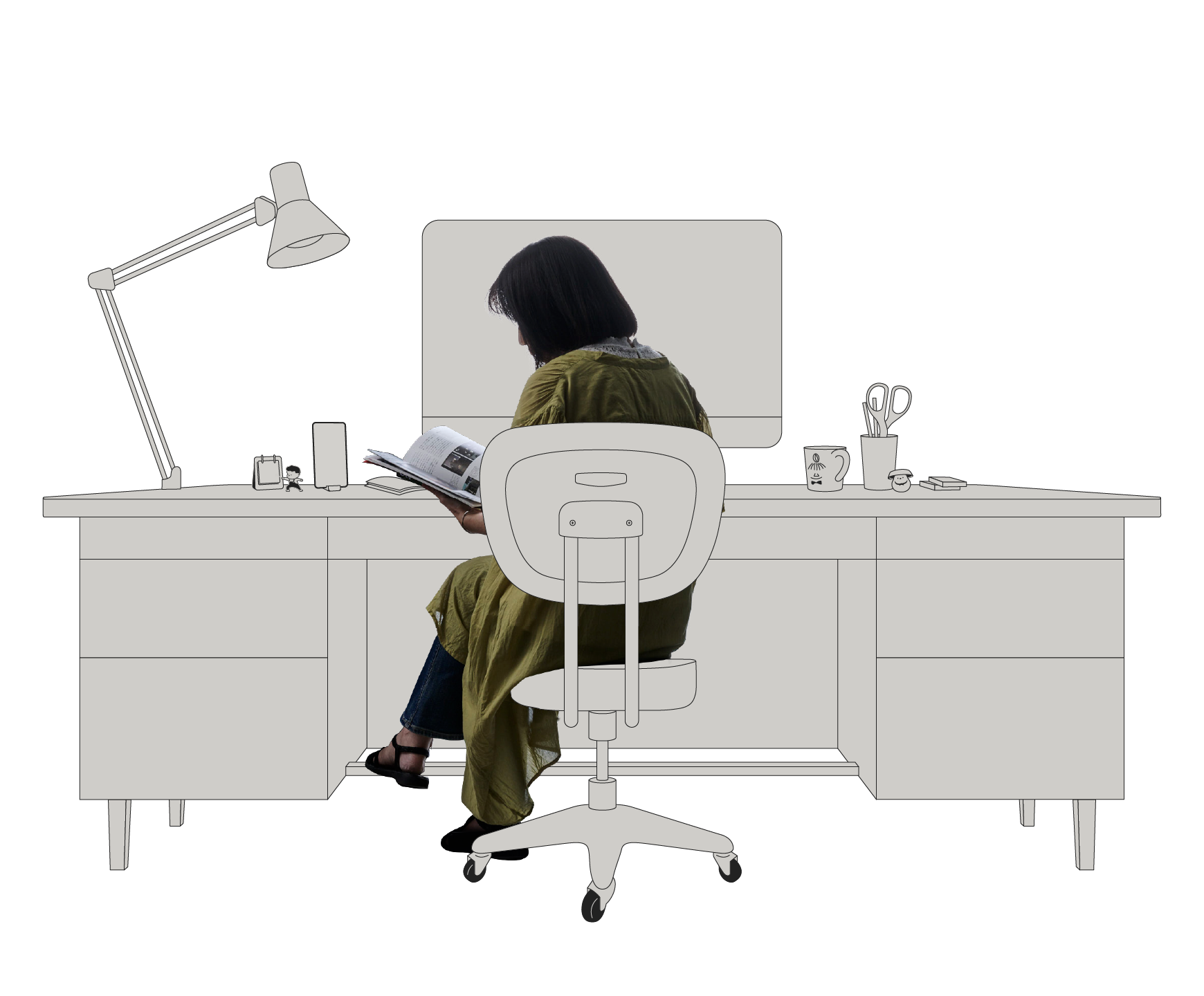机に置かれたお気に入りのアイテムとともに働くうしろ姿を、ぜひ覗いてみてください。