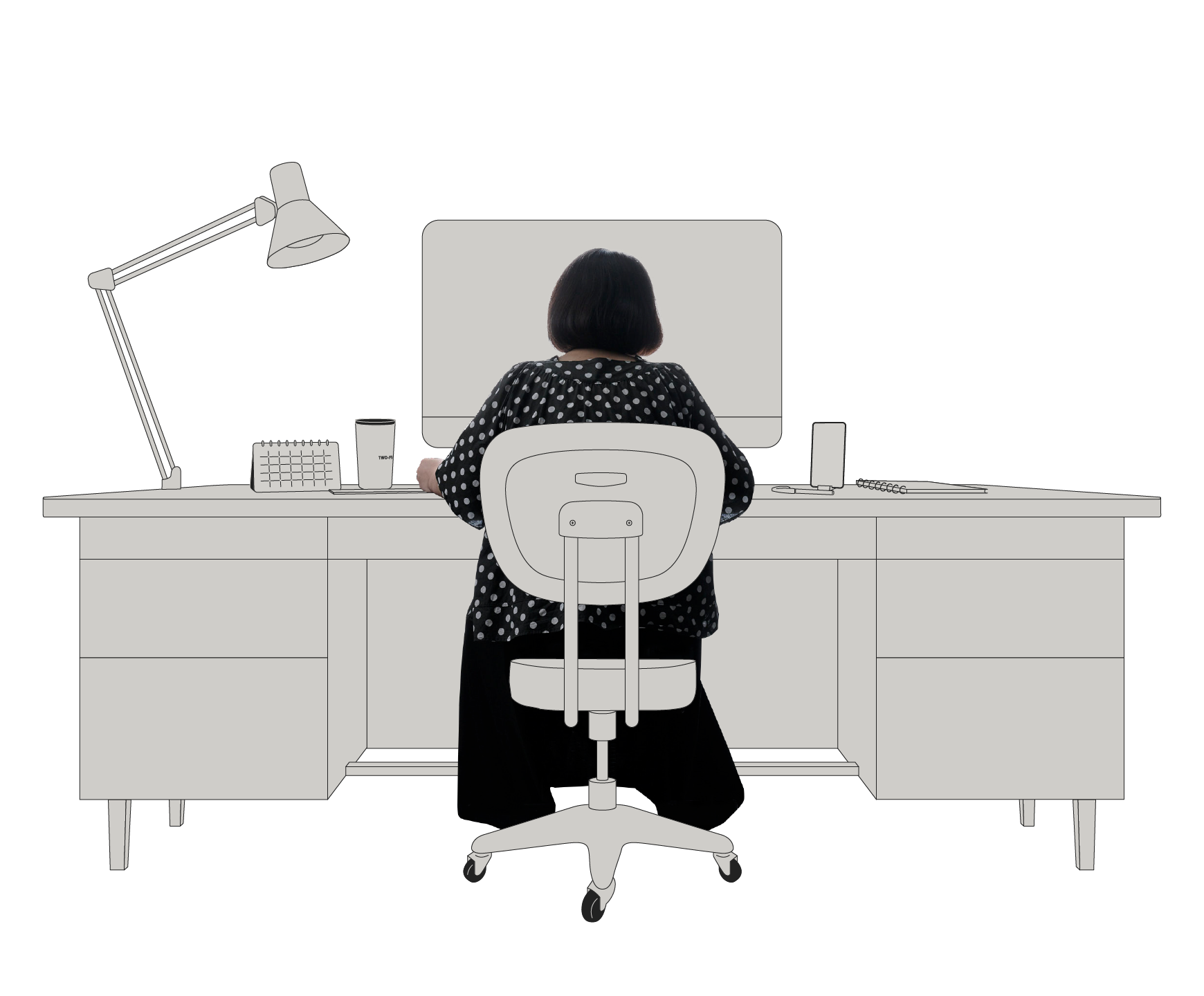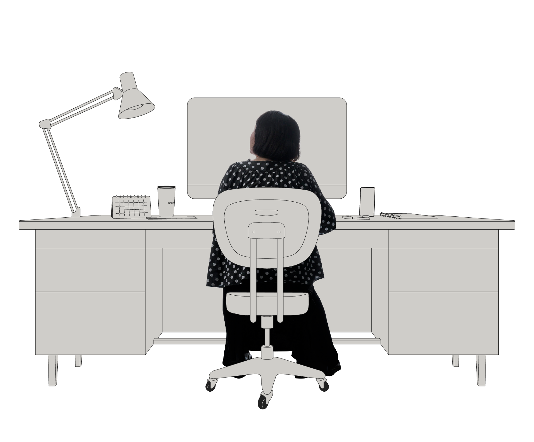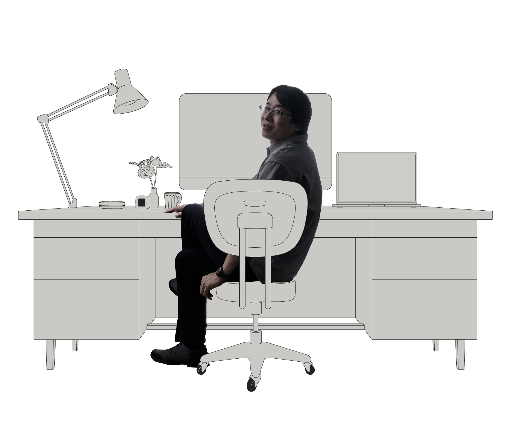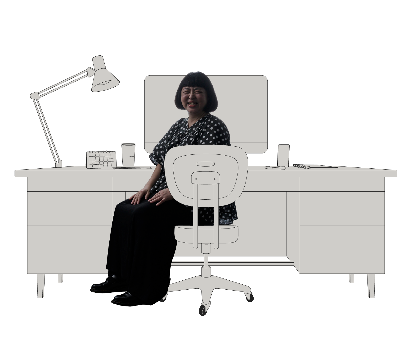 机に置かれたお気に入りのアイテムとともに働くうしろ姿を、ぜひ覗いてみてください。
