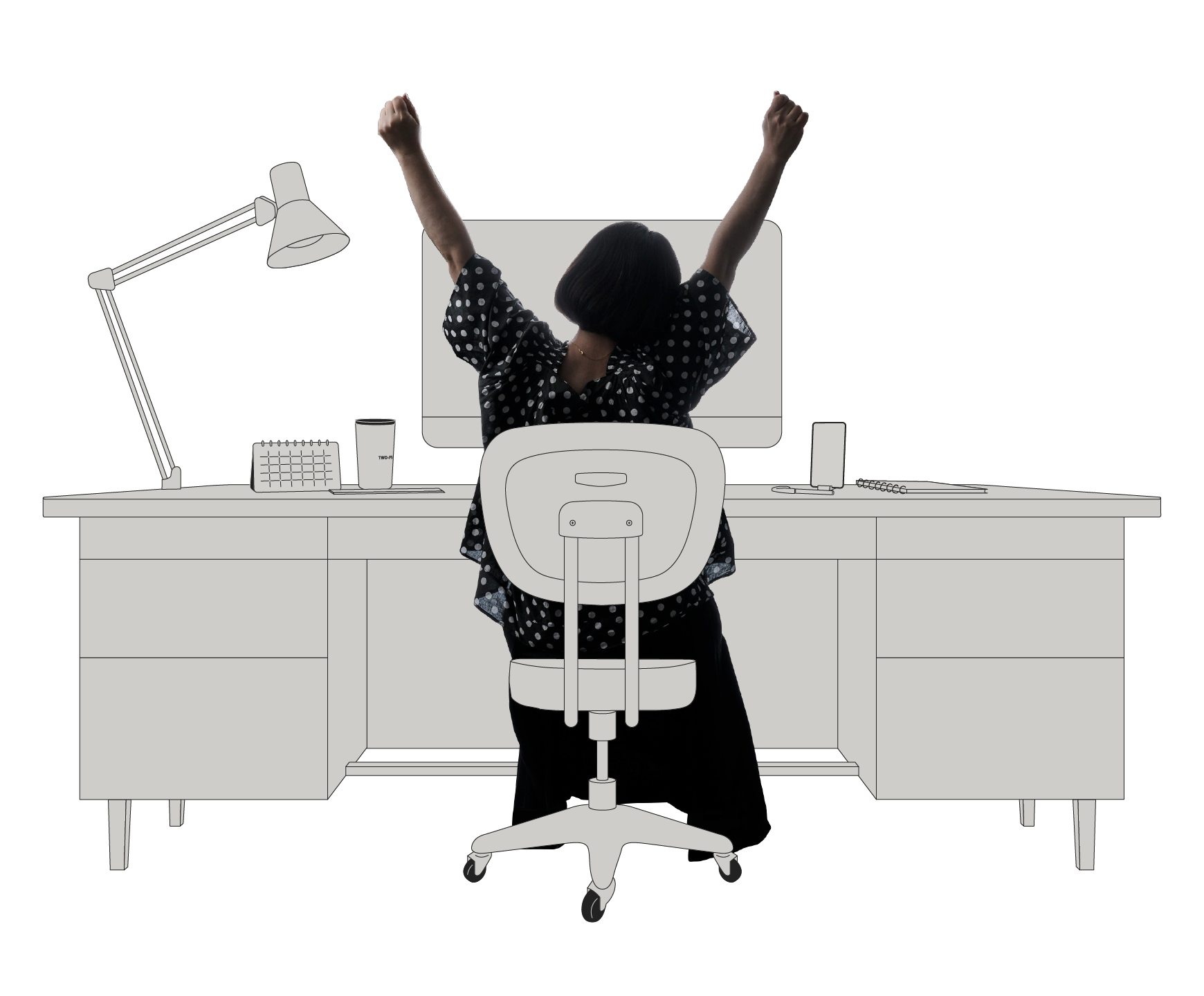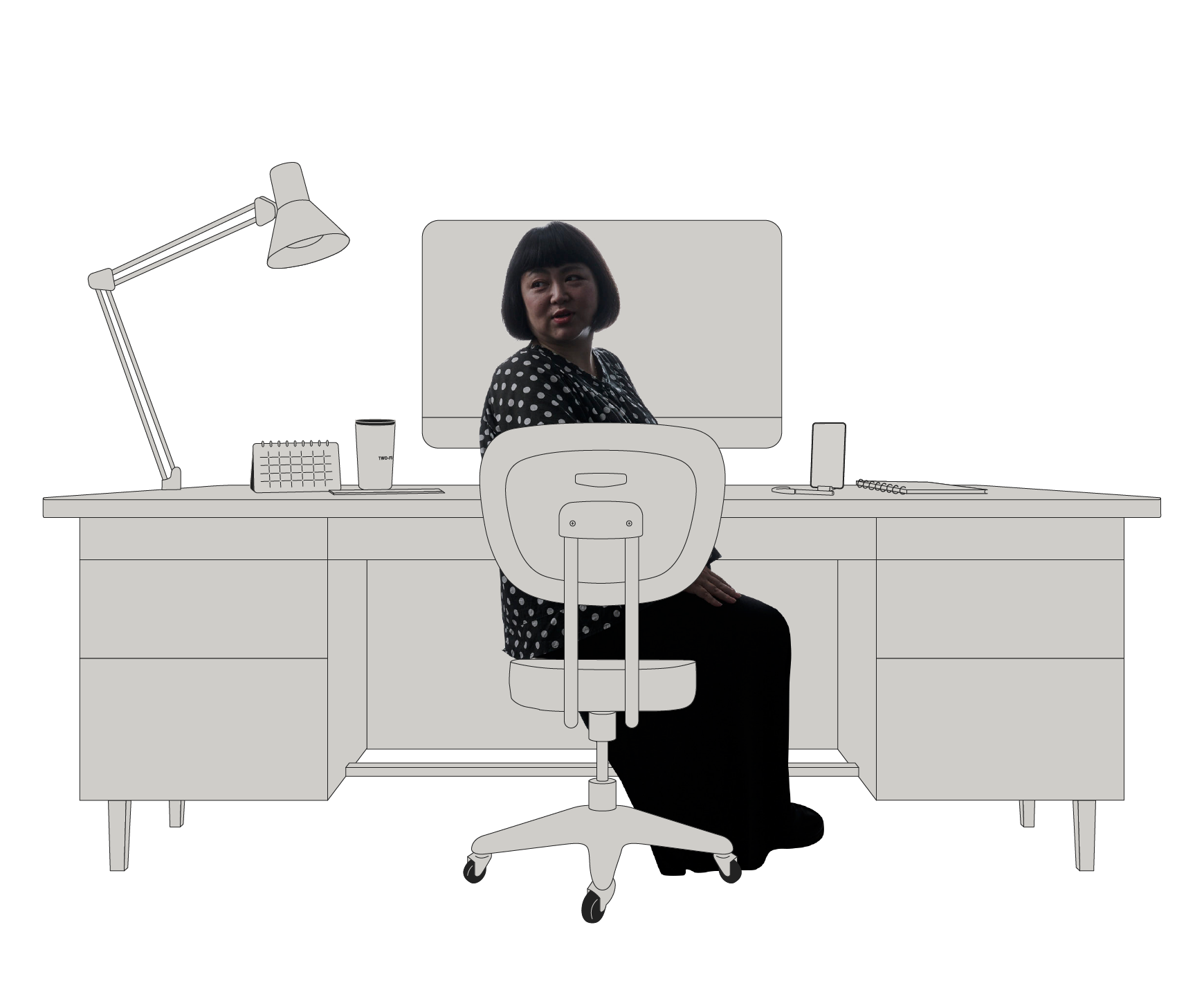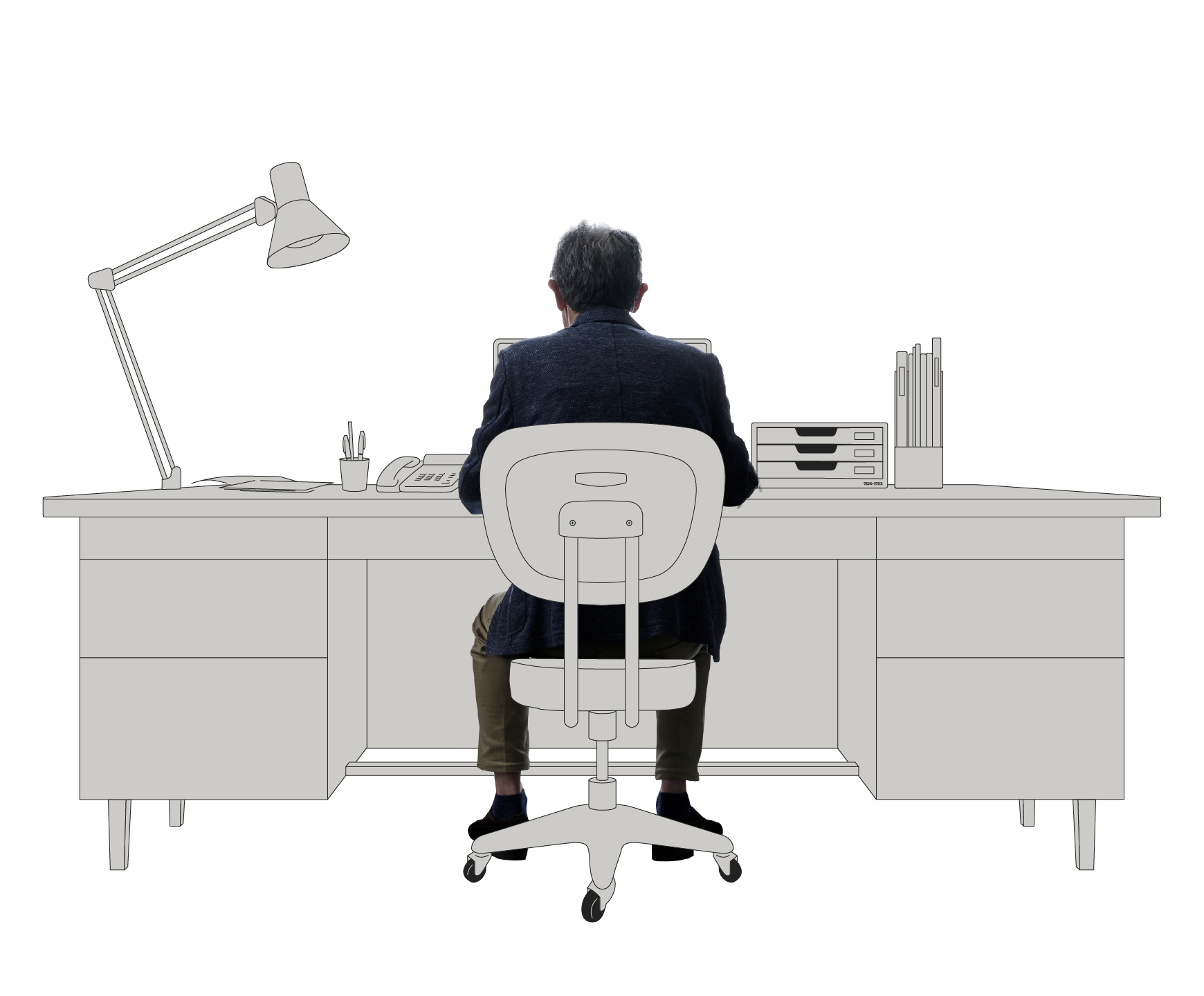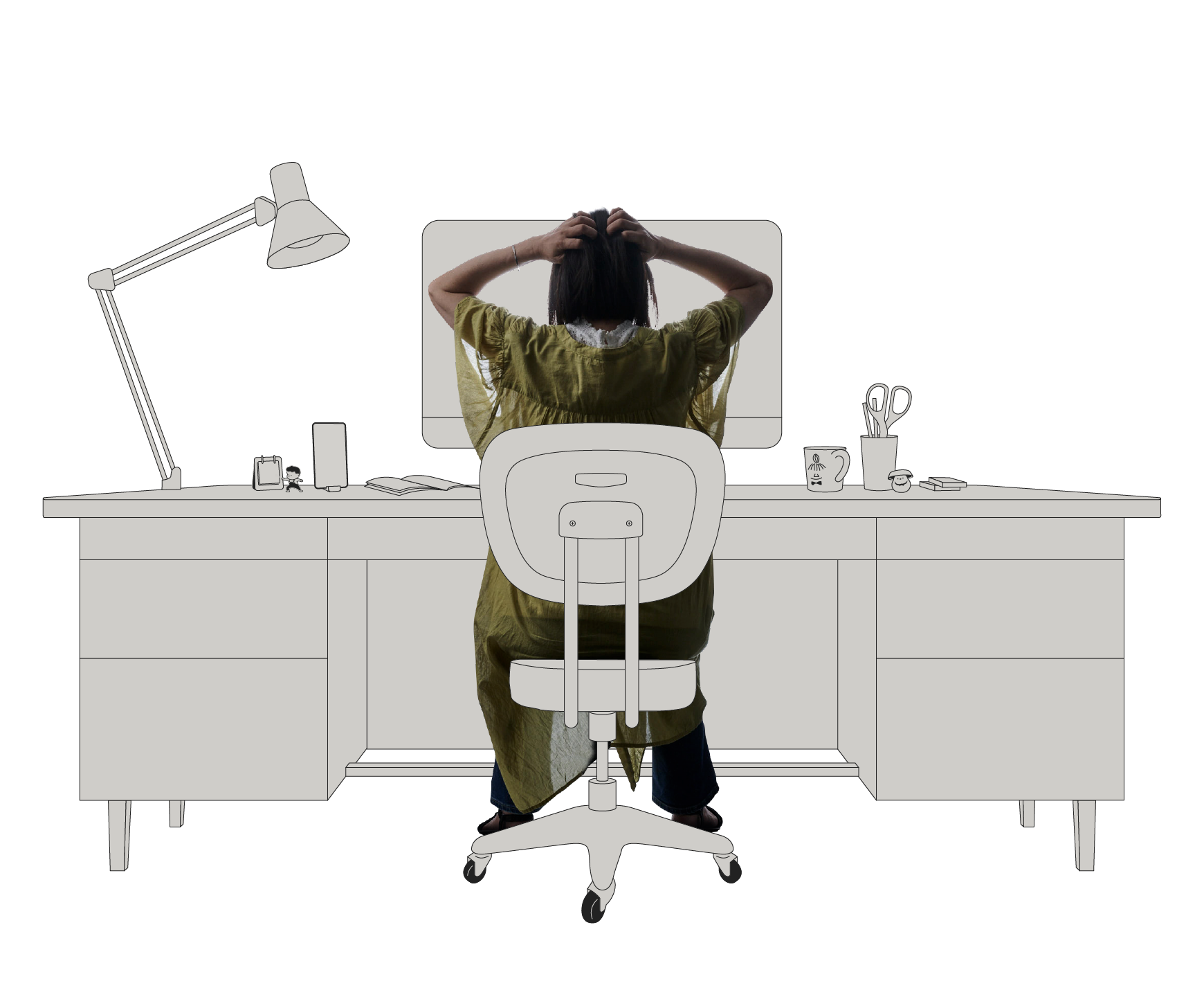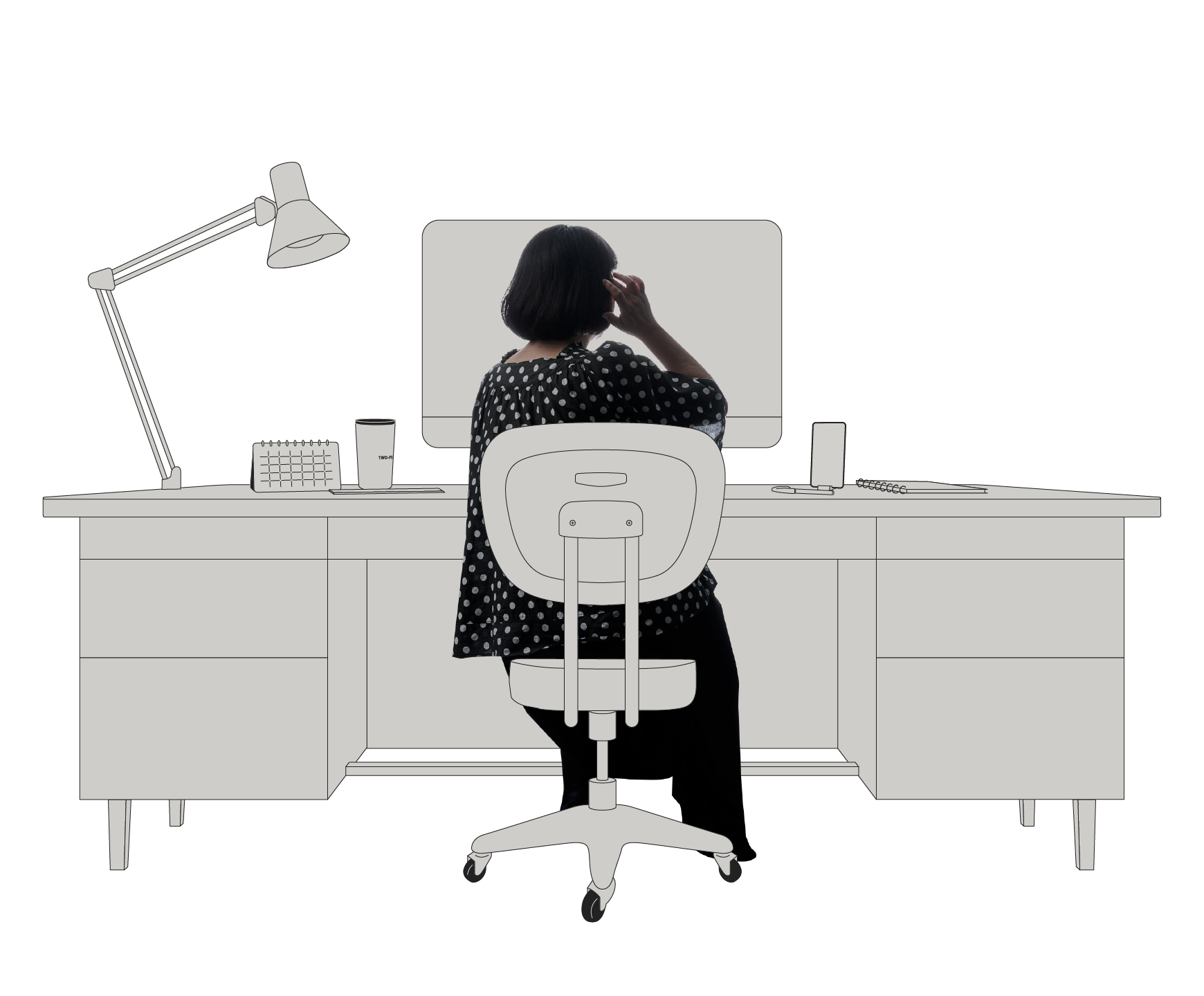 机に置かれたお気に入りのアイテムとともに働くうしろ姿を、ぜひ覗いてみてください。